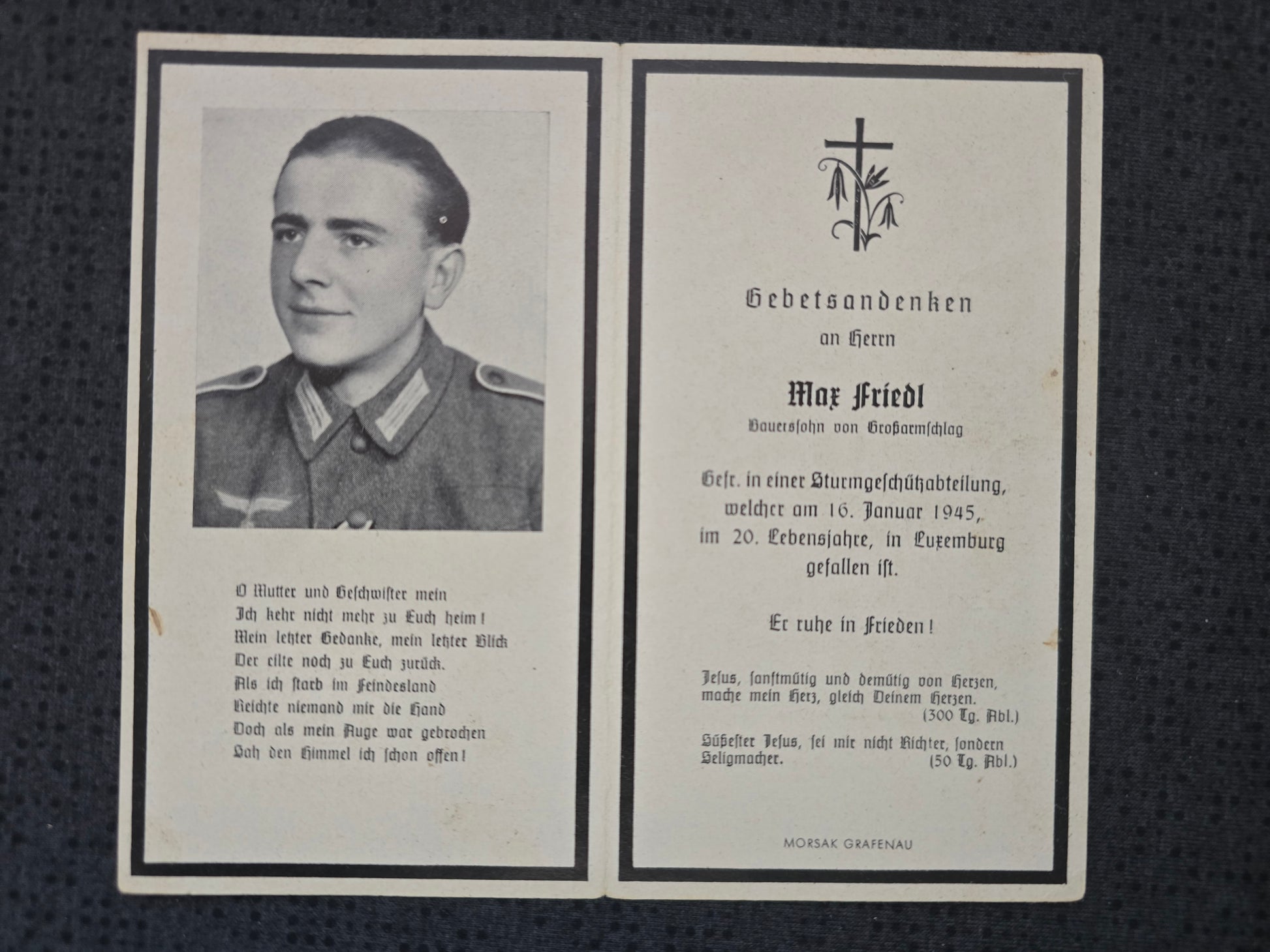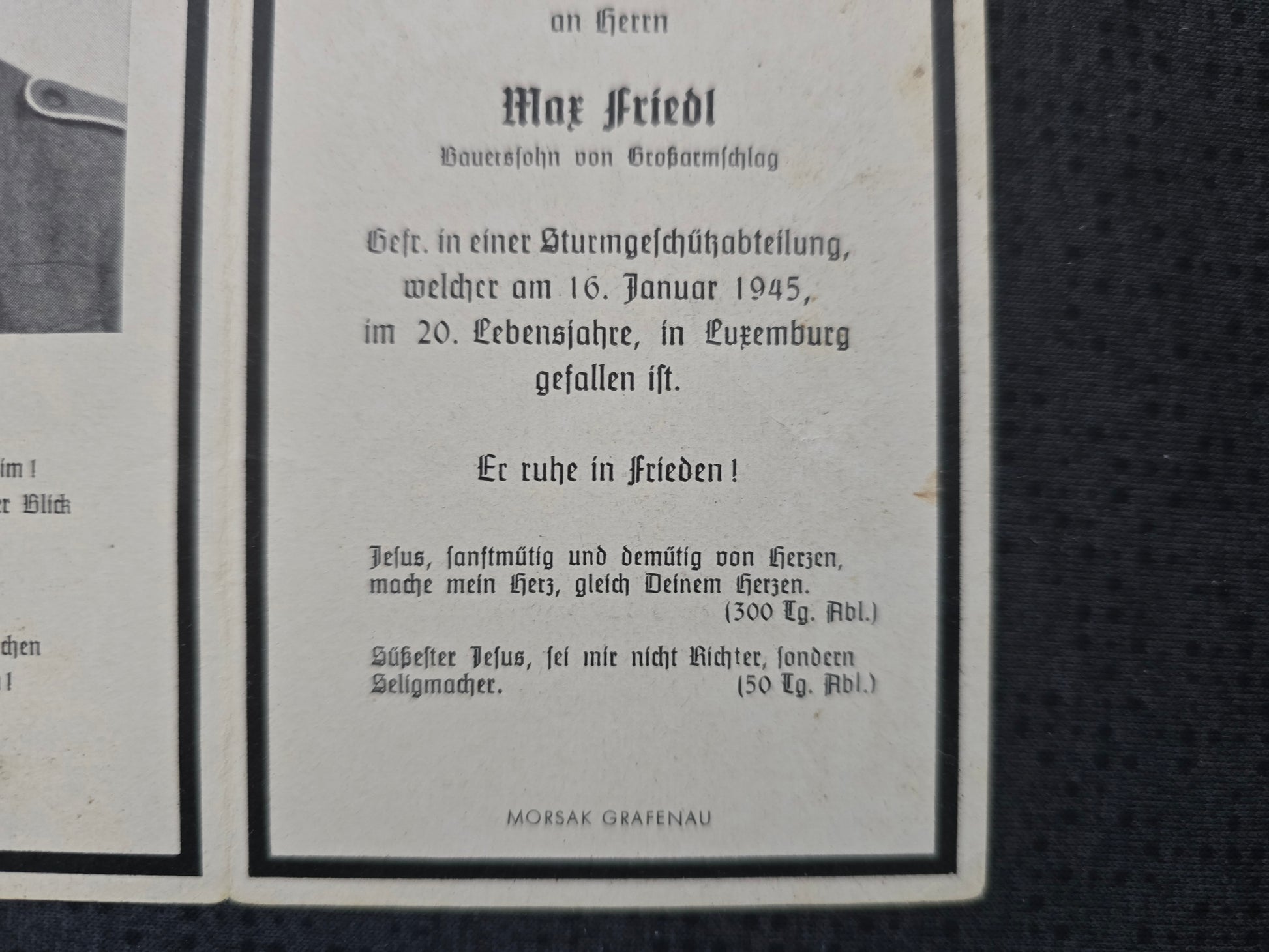 Sterbebild Gefreiter Grafenau Sturmgeschütz Abteilung Endkampf Sandweiler Luxemburg
