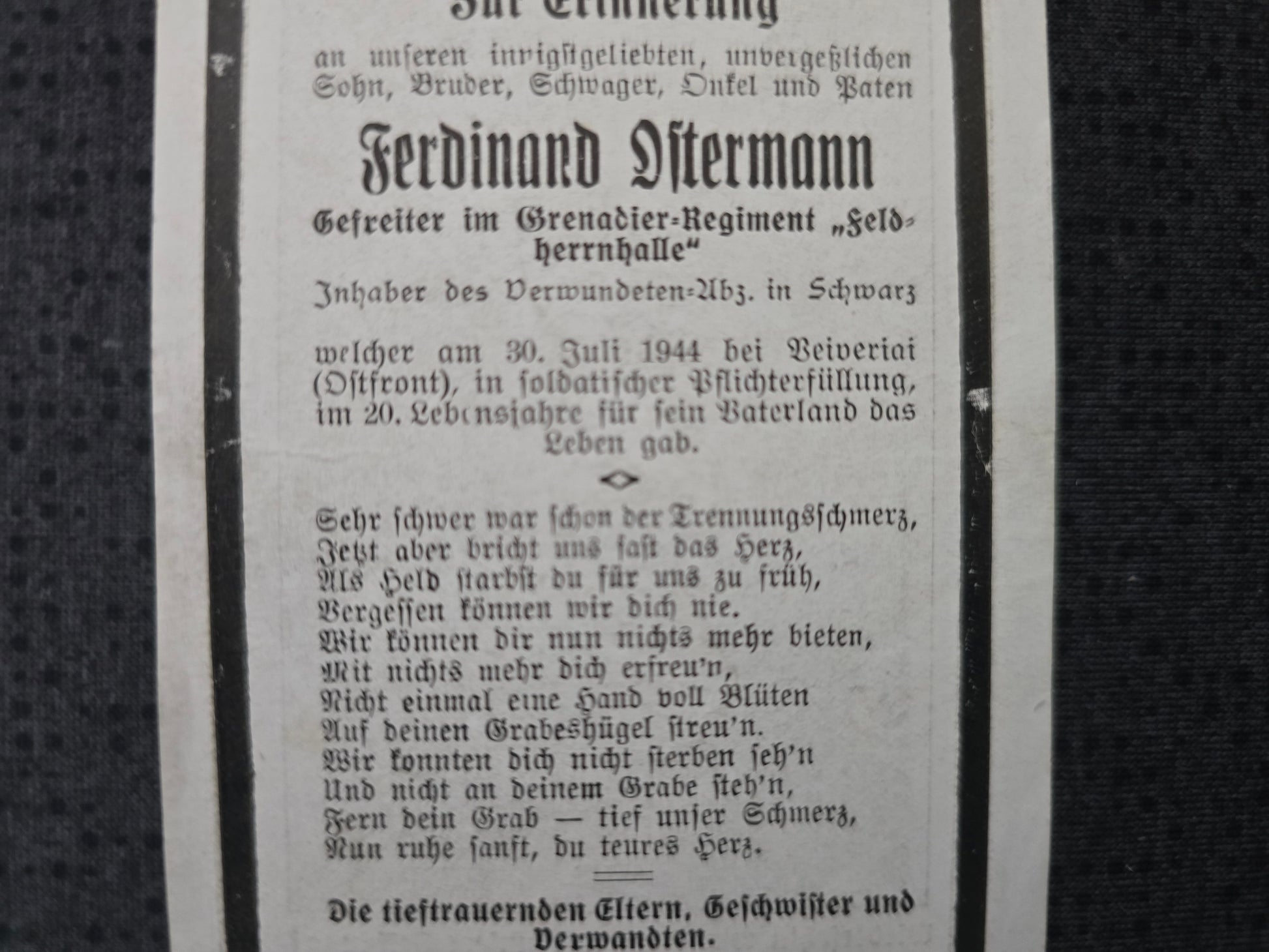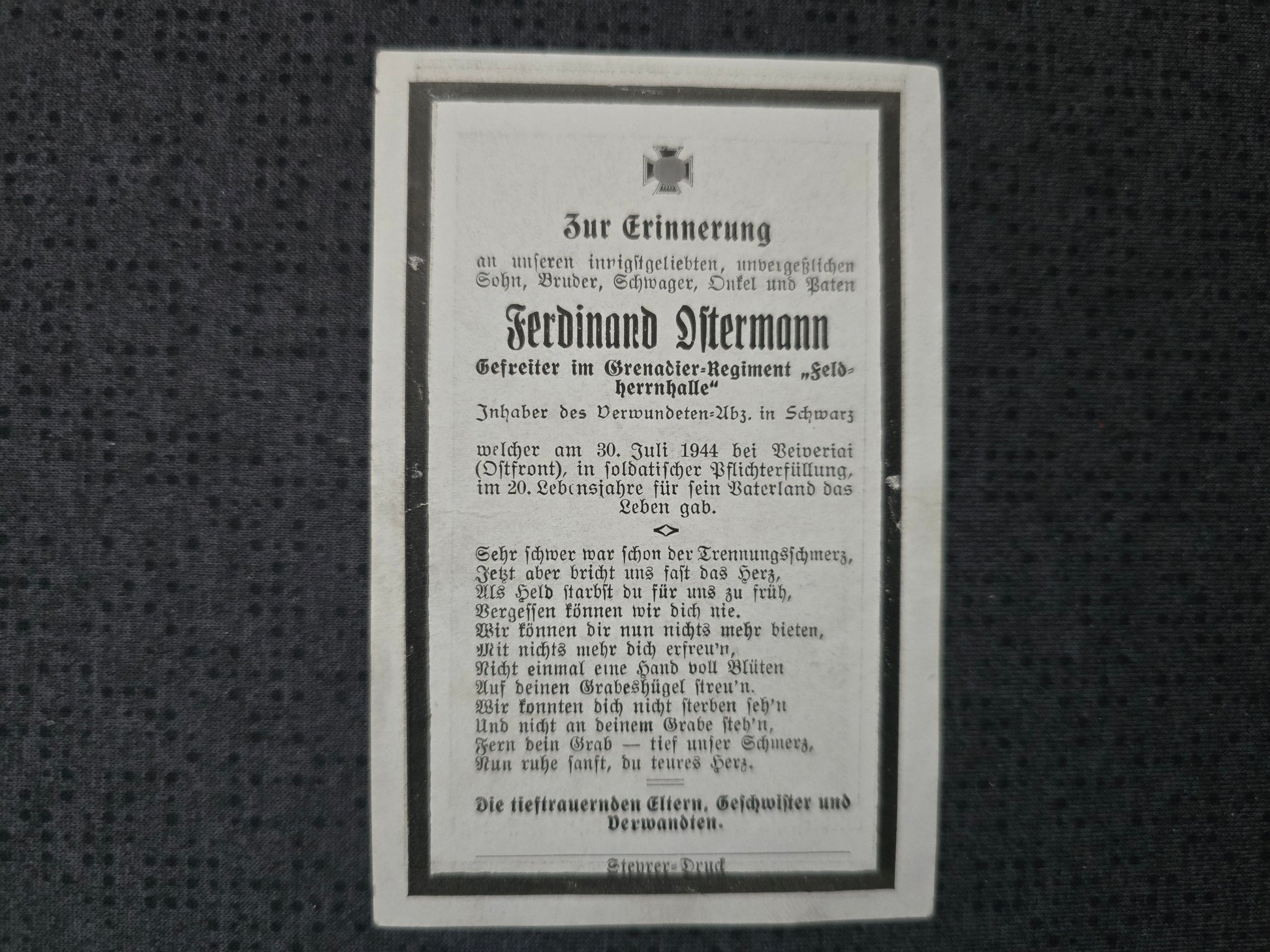 Sterbebild Gefreiter Grenadier Regt. "Feldherrnhalle" FHH Veiveriai Litauen