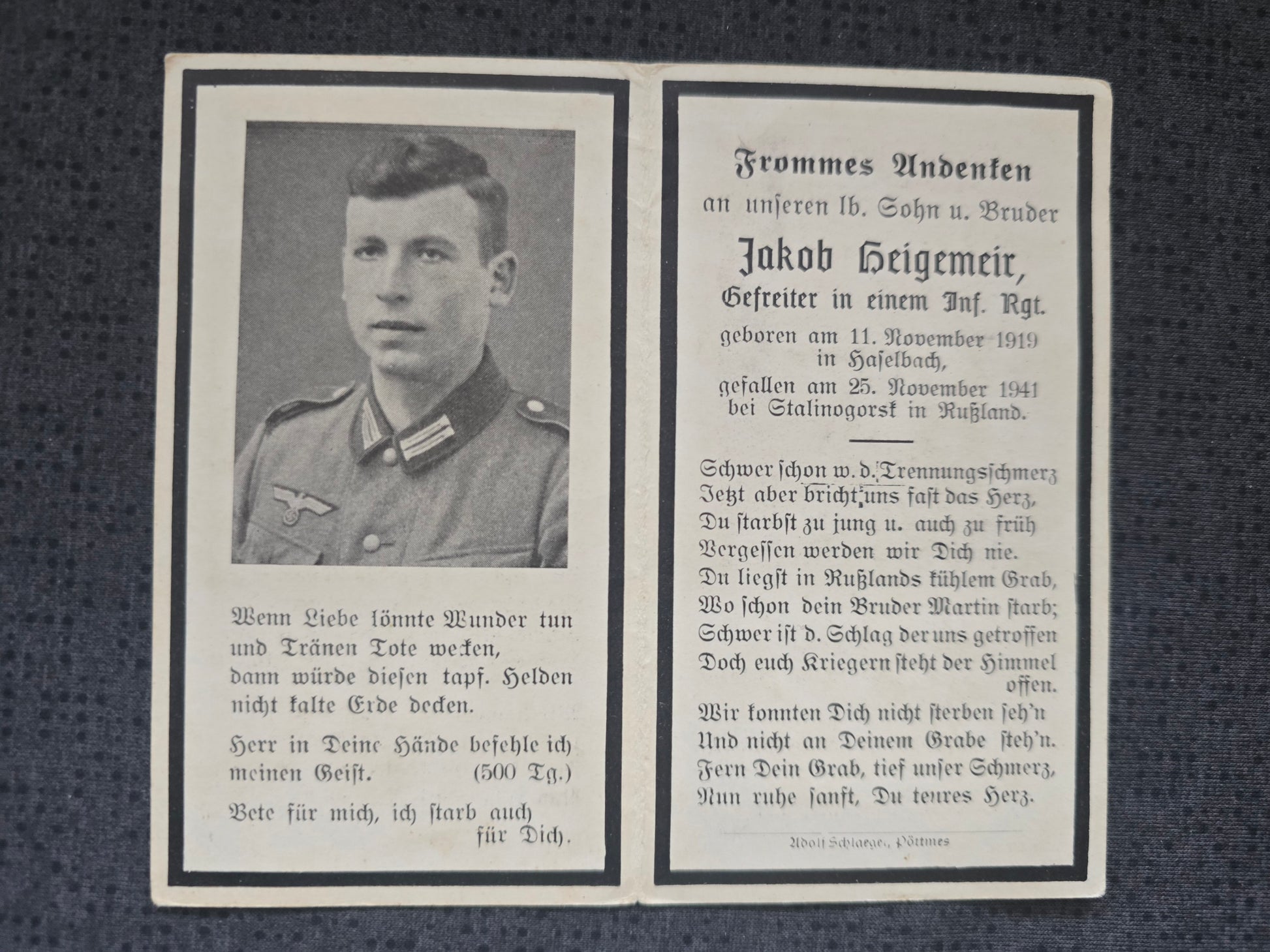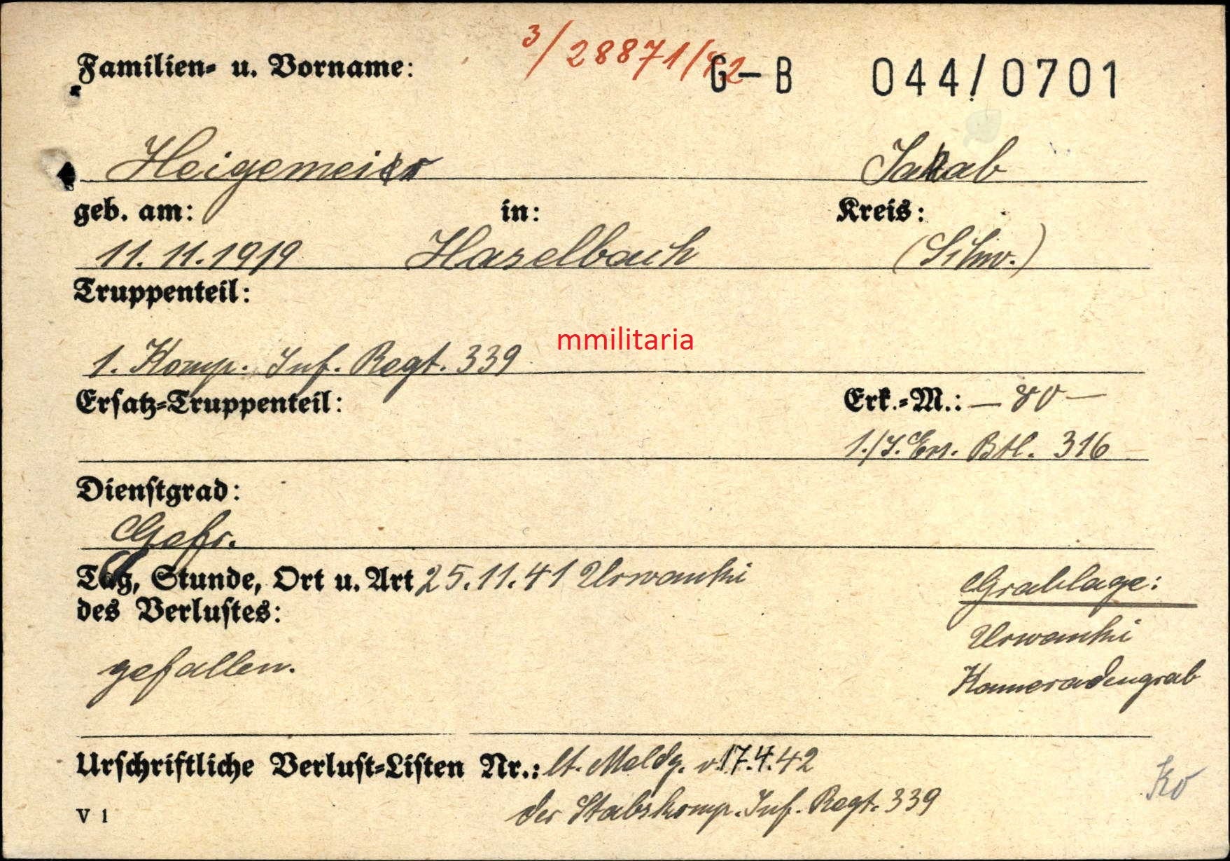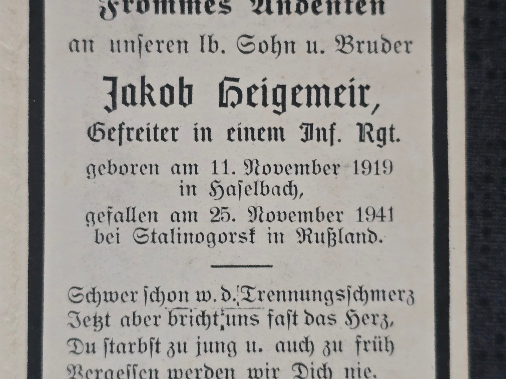 Gefallen am 25.11.1941 in Urwanki (Russland)