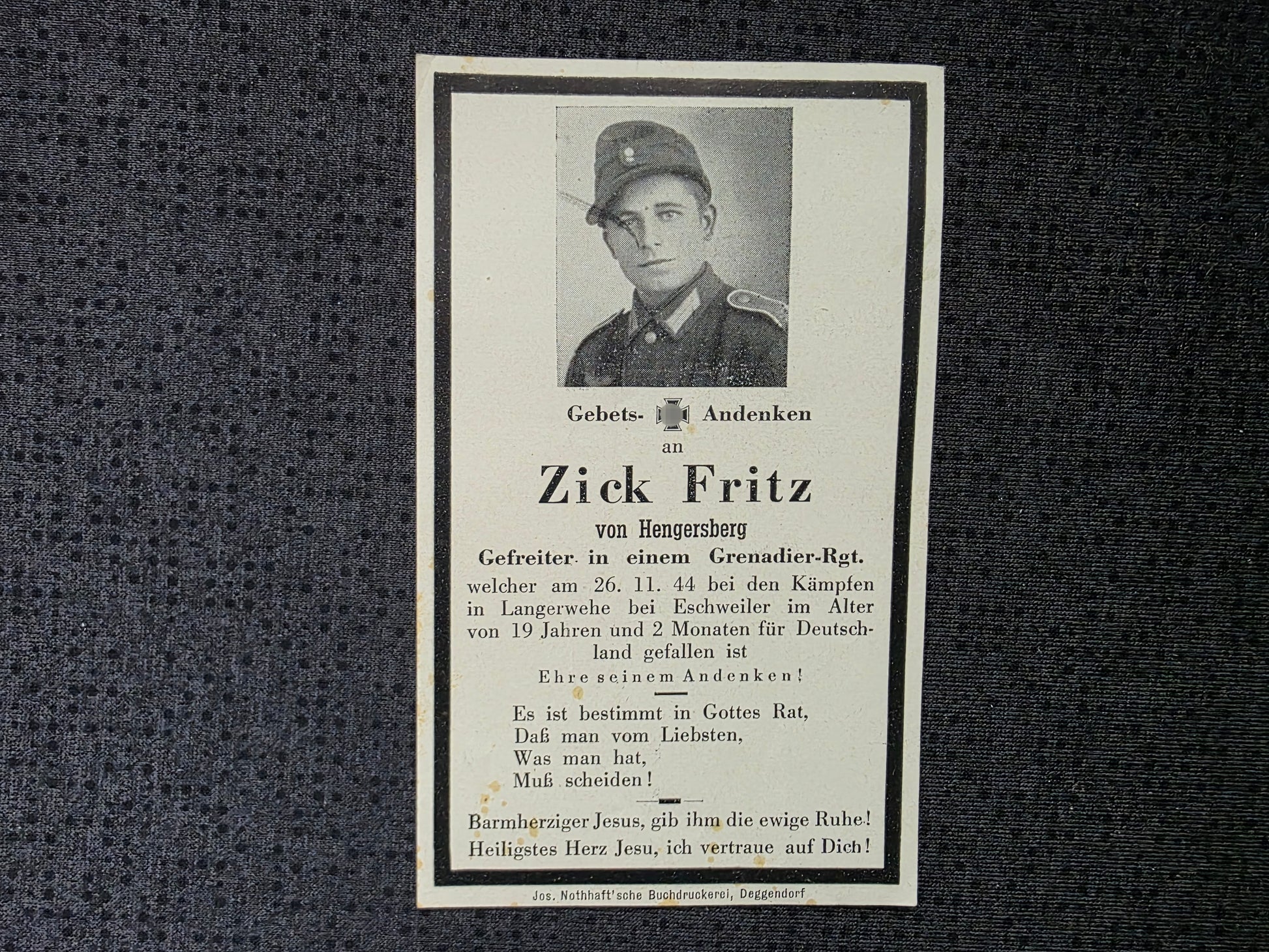 Sterbebild Gefreiter Hengersberg Grenadier Regt. Eschweiler Aachen