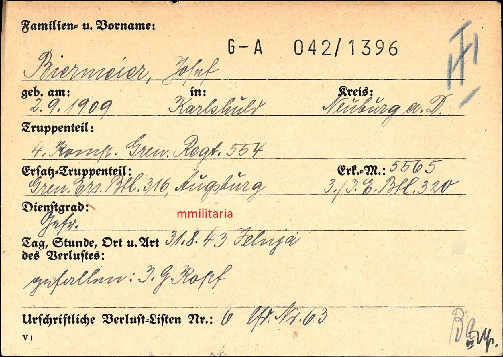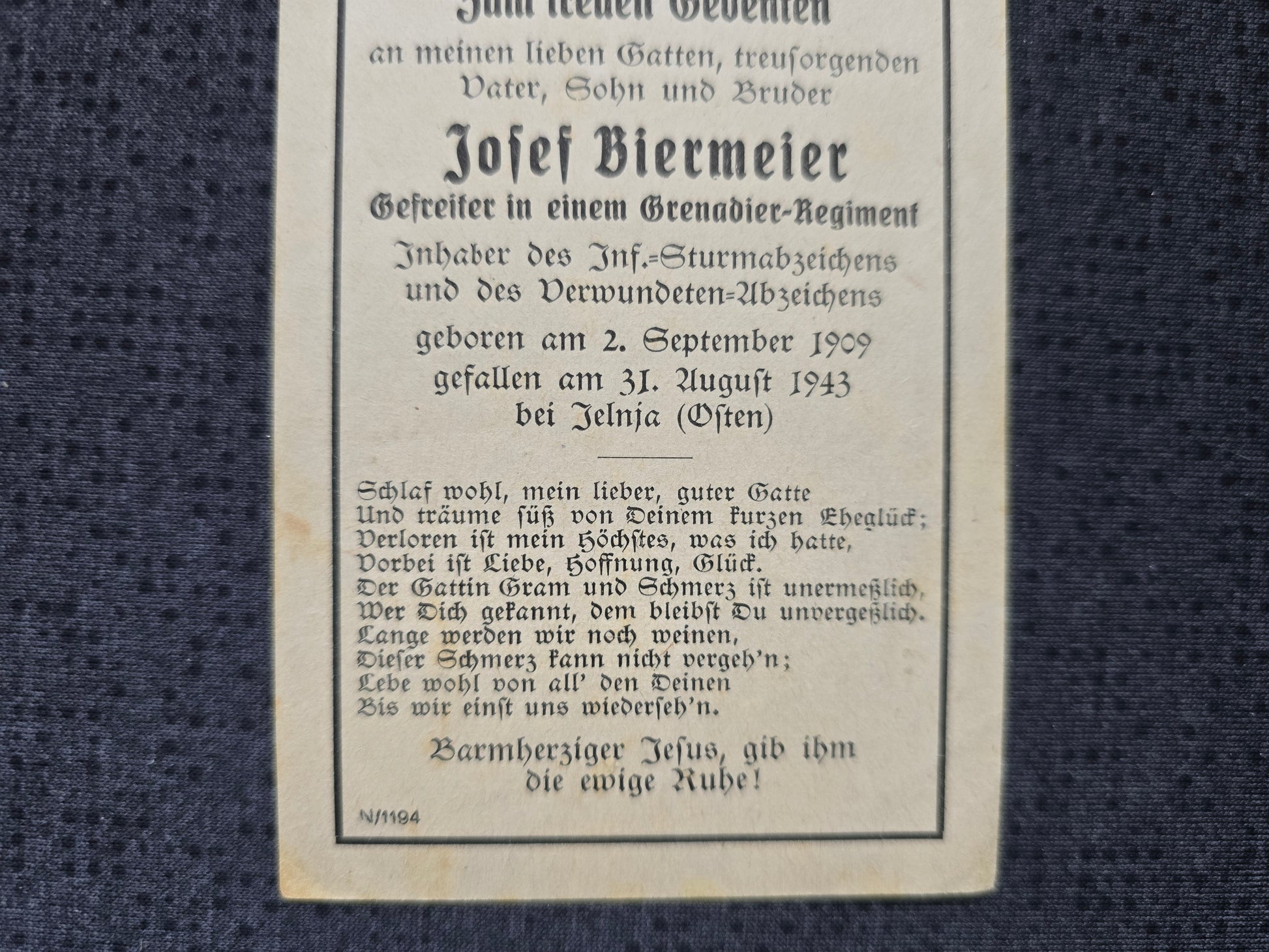 Sterbebild Gefreiter Karlshuld 4. Komp. Gren. Regt. 554 Jelnja Russland