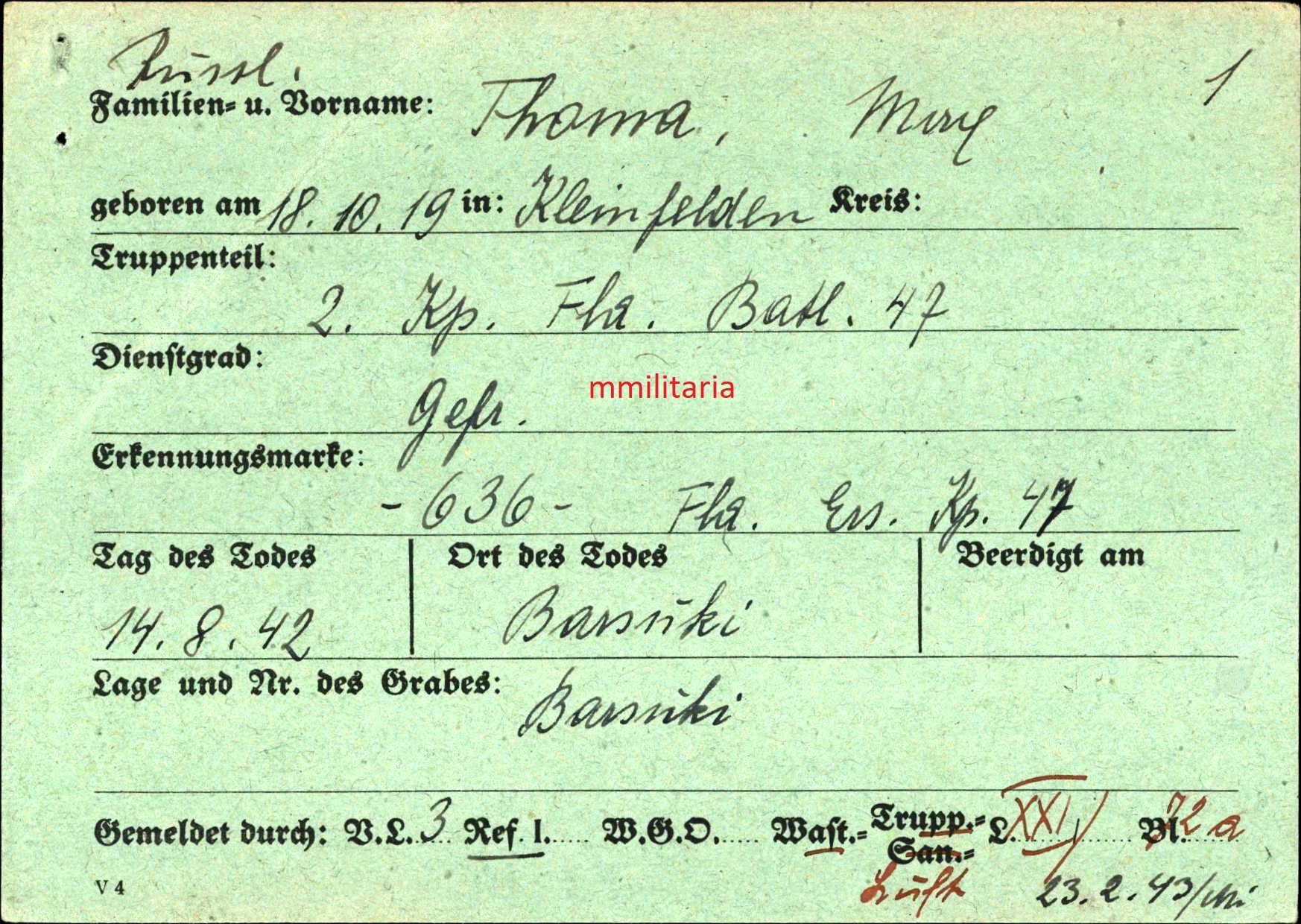 Gefallen am 15.08.1942 in Barsuki (Russland)