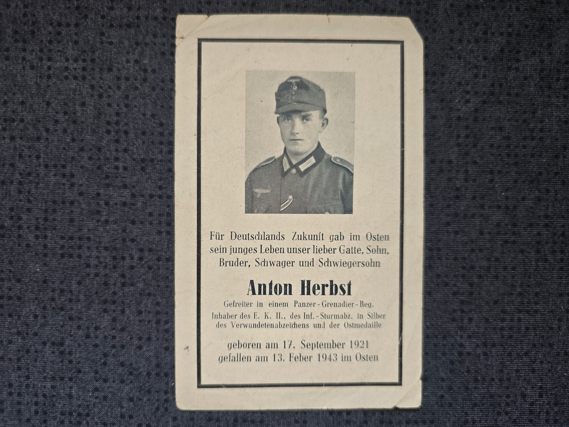 Sterbebild Gefreiter Krummau Panzer-Grenadier Regt. ISA Silber EK II Slawjansk Ukraine
