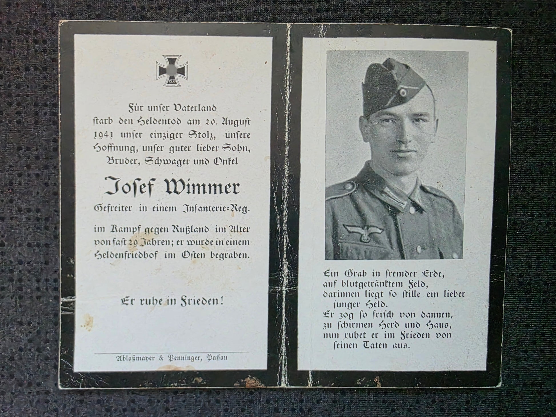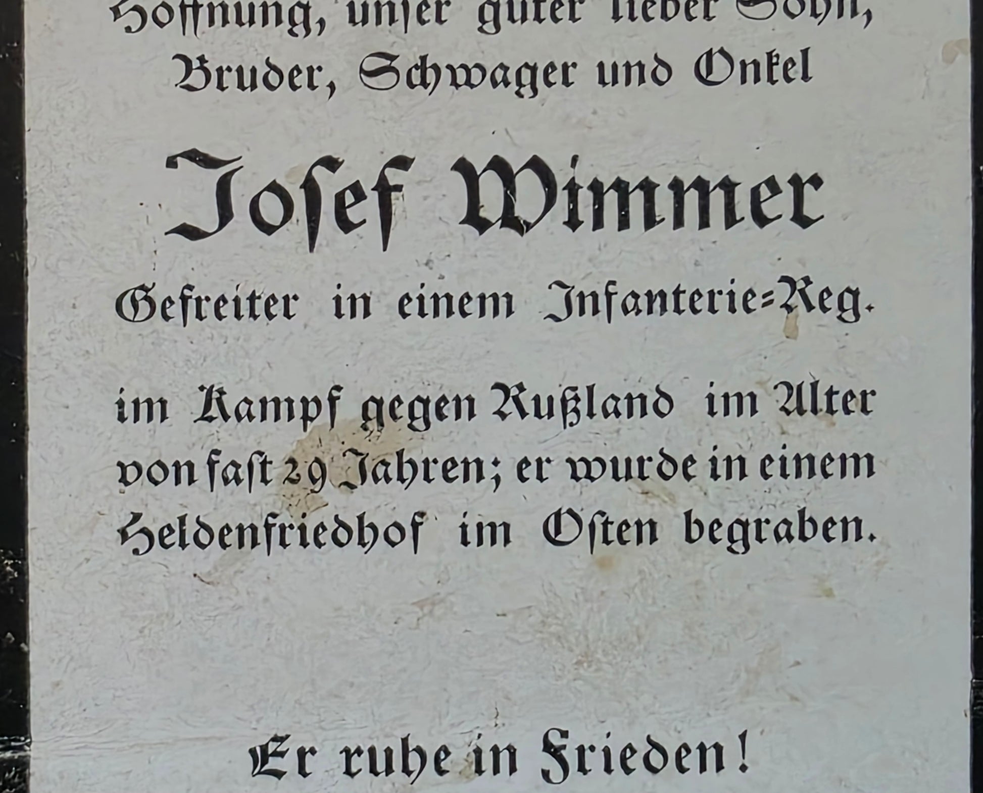 Sterbebild Gefreiter Kurzeichet 1. Komp. Inf. Regt. 81 Mitina Russland