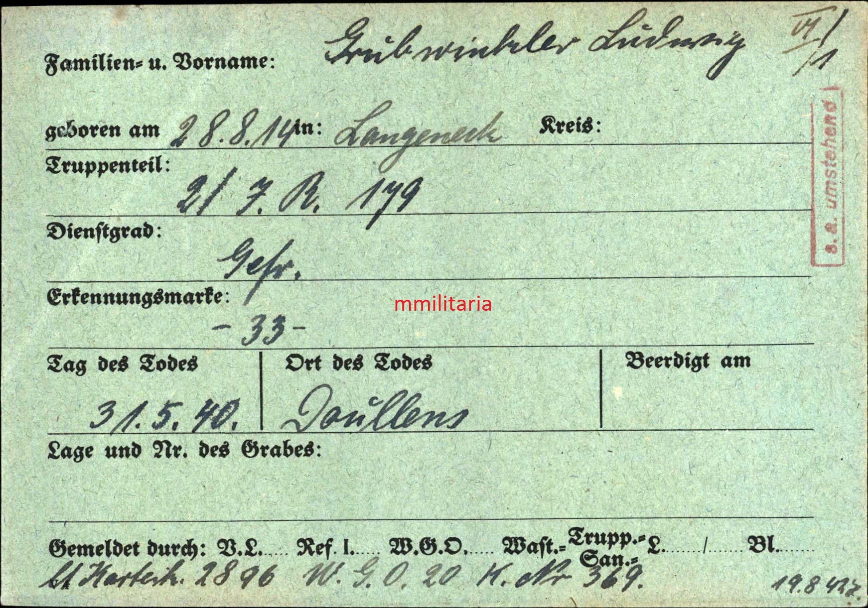 Gefallen am 31.05.1940 in Doullens (Frankreich)