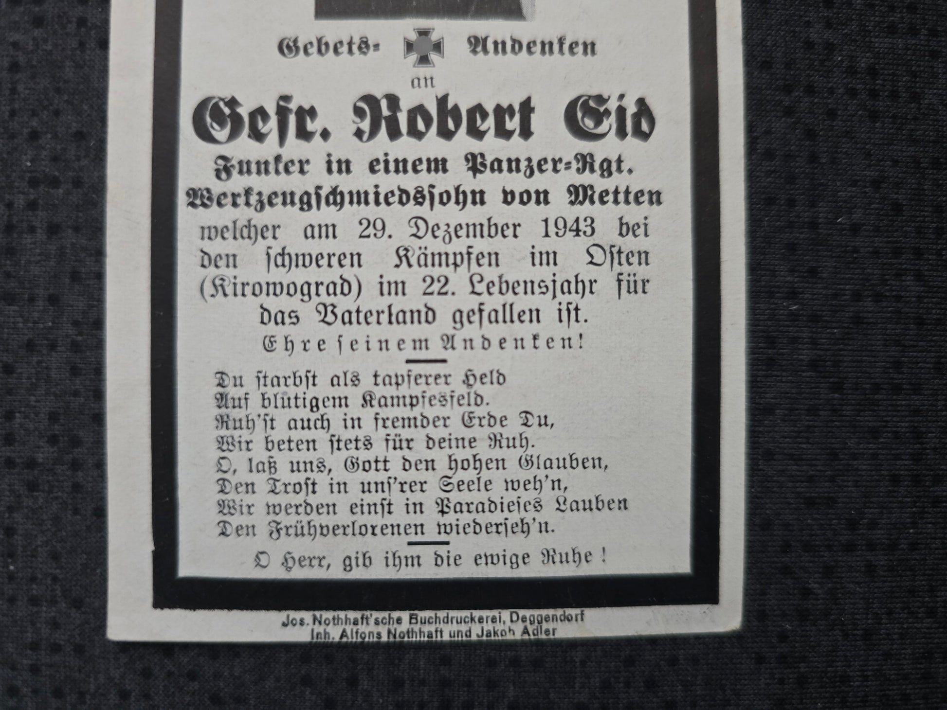 Sterbebild Gefreiter Metten Funker Panzer Regiment Kirowograd Russland