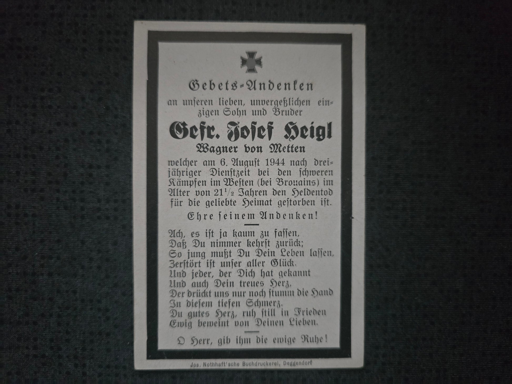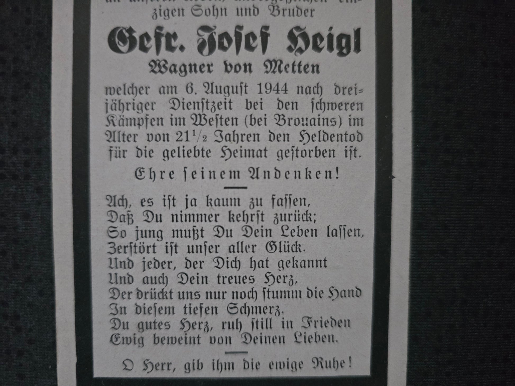 Sterbebild Gefreiter Metten Grenadier Regt. Normandie Brouains Marigny Frankreich