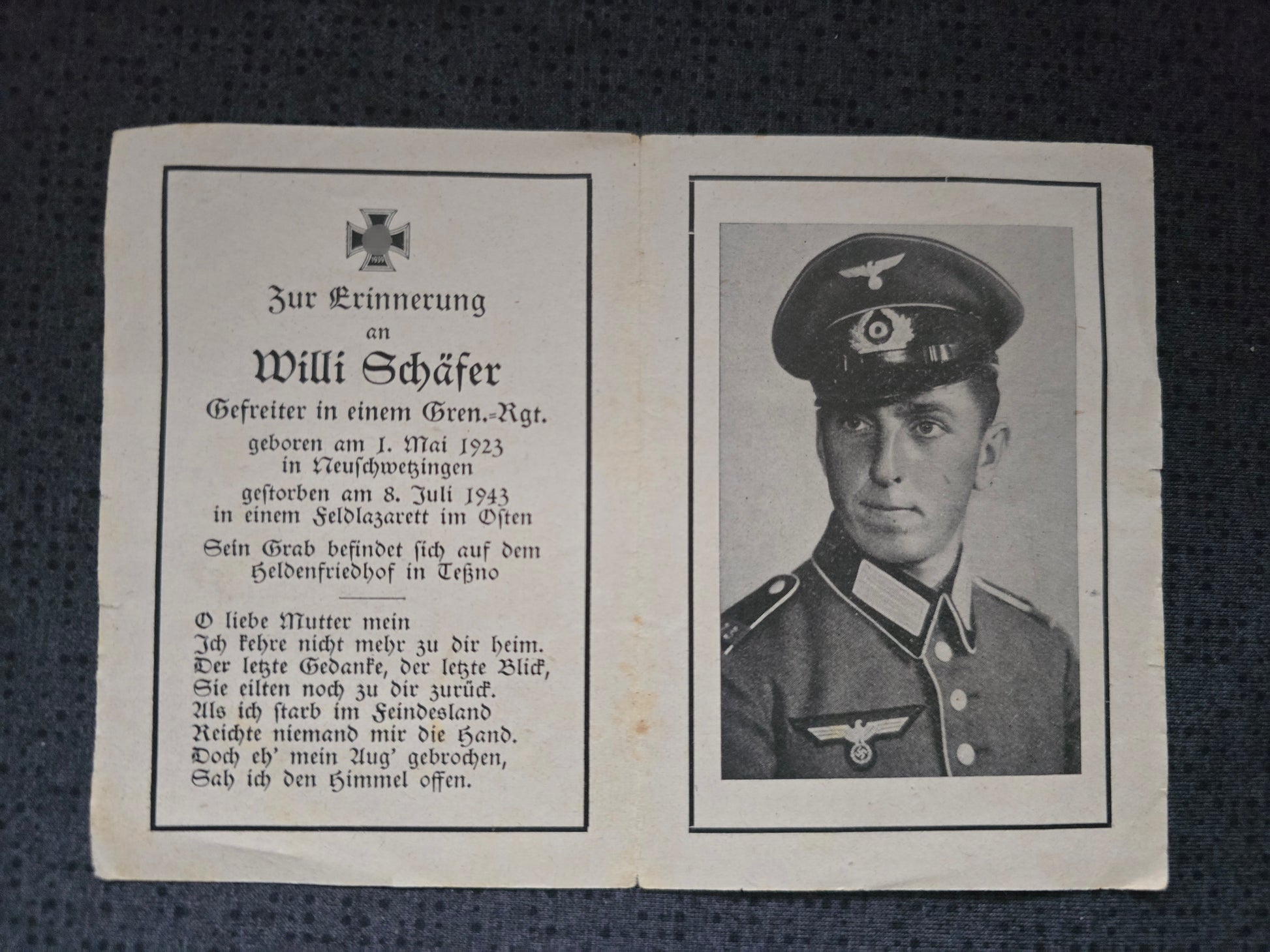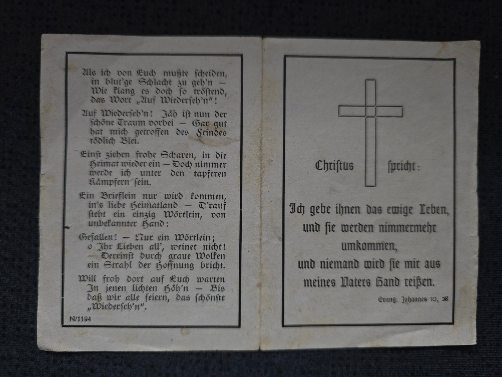 Sterbebild Gefreiter Neuschwetzingen 2. Komp. Gren. Regt. 436 Feldlaz.269 Tossno Russland