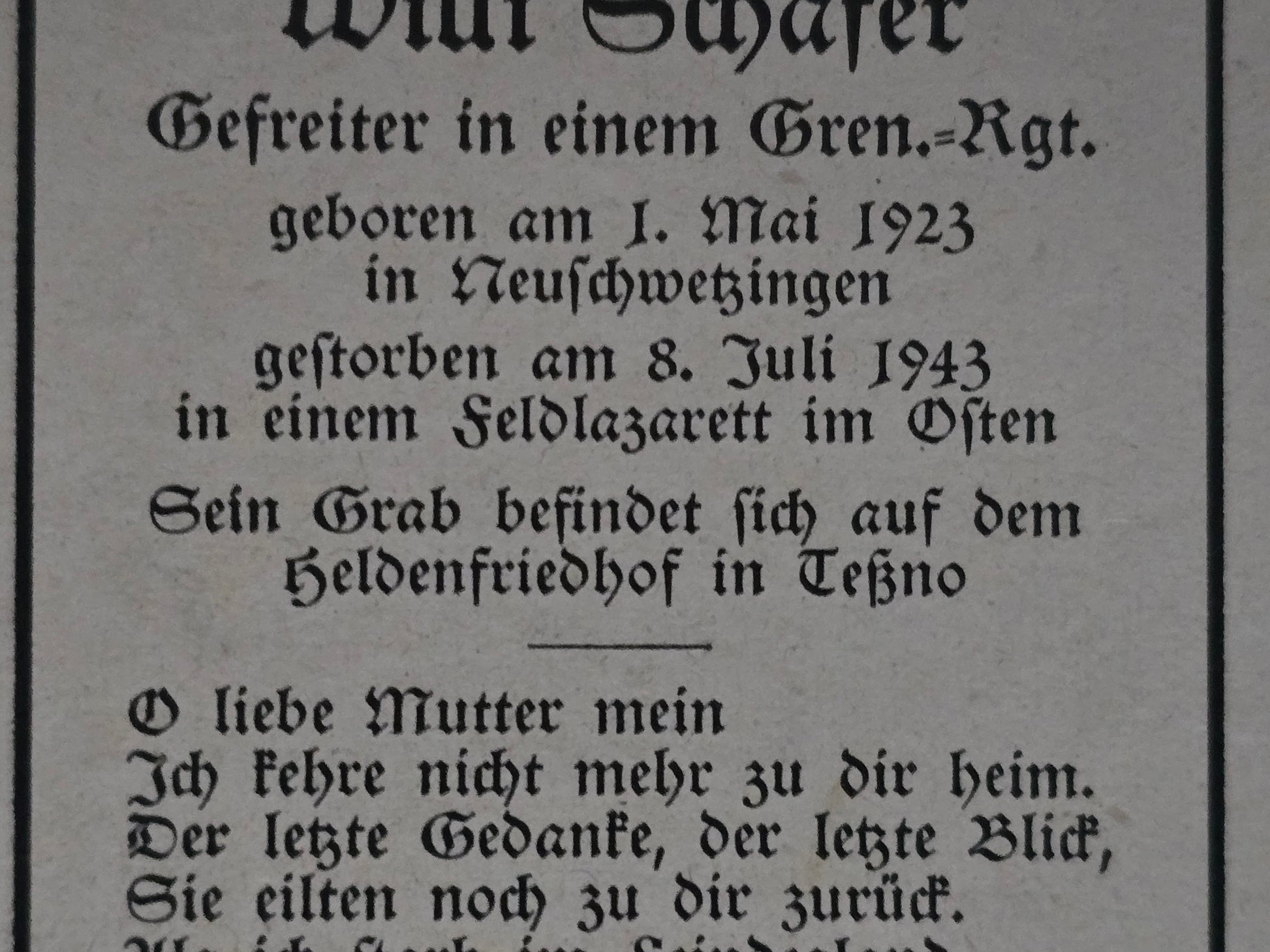 Gestorben am 08.07.1943 im Lazarett Tossno (Russland)