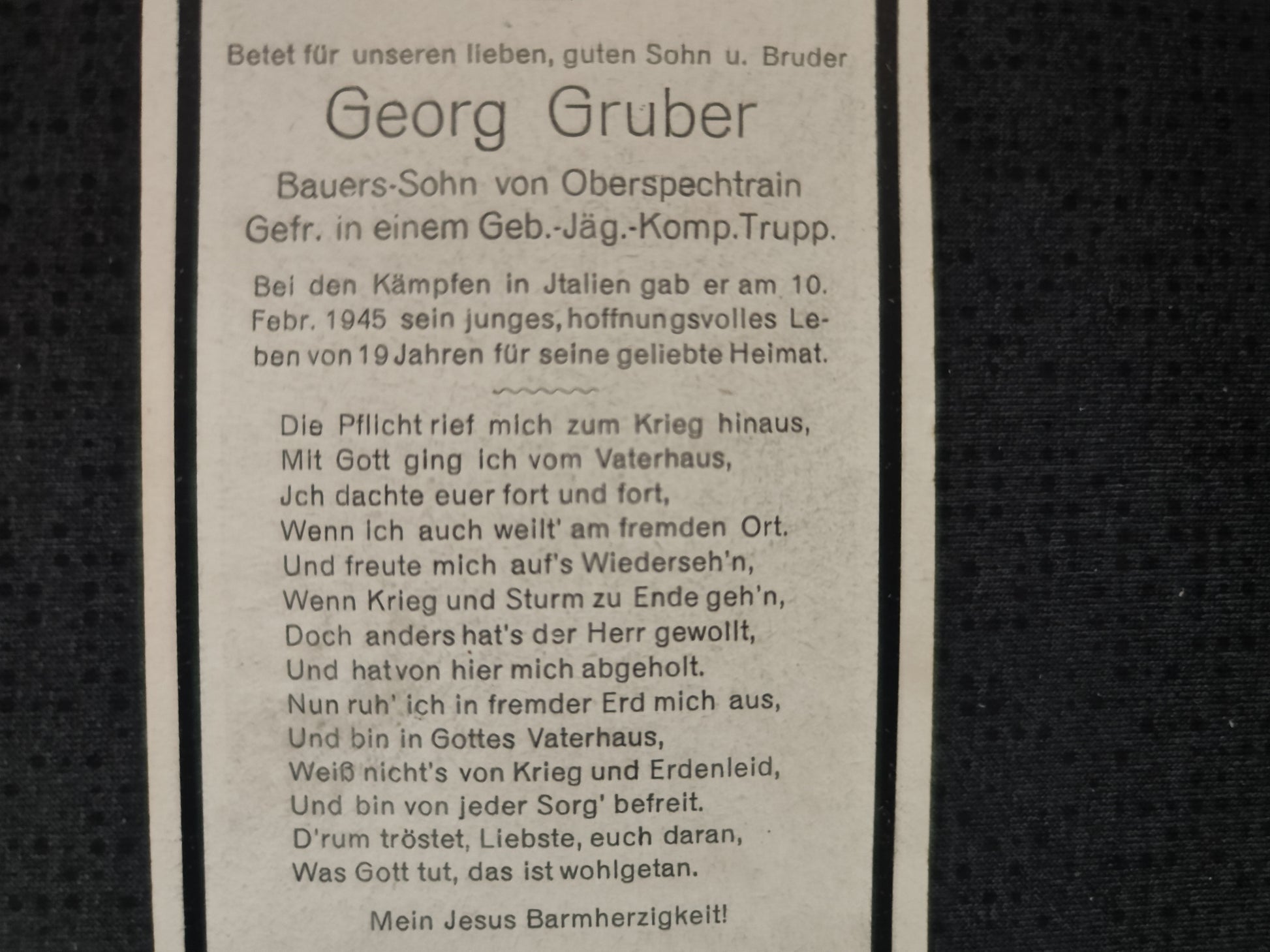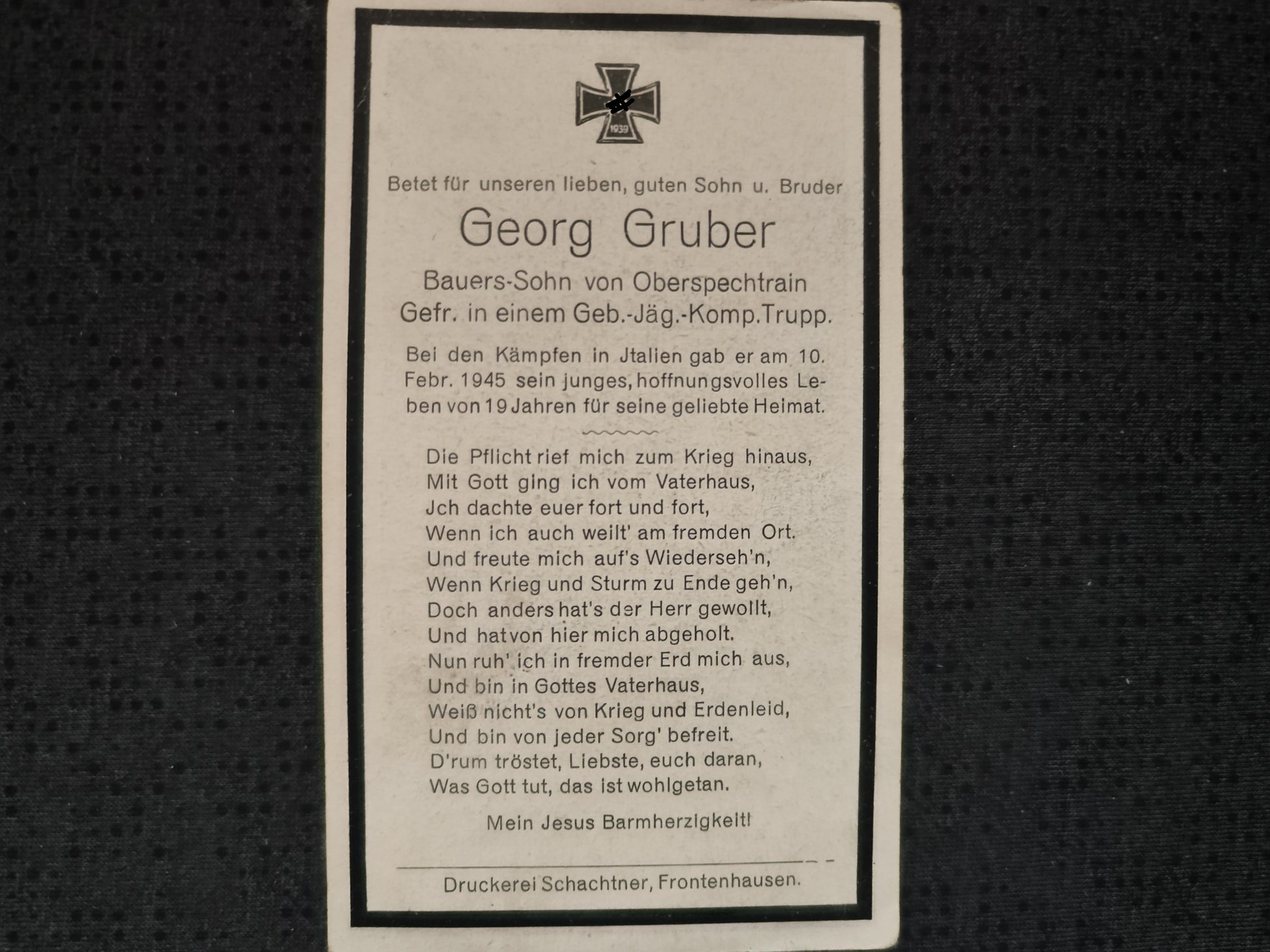 Sterbebild Gefreiter Oberspechtrain Gebirgs-Jäger Kompanie Trupp Endkampf Futa-Pass Italien