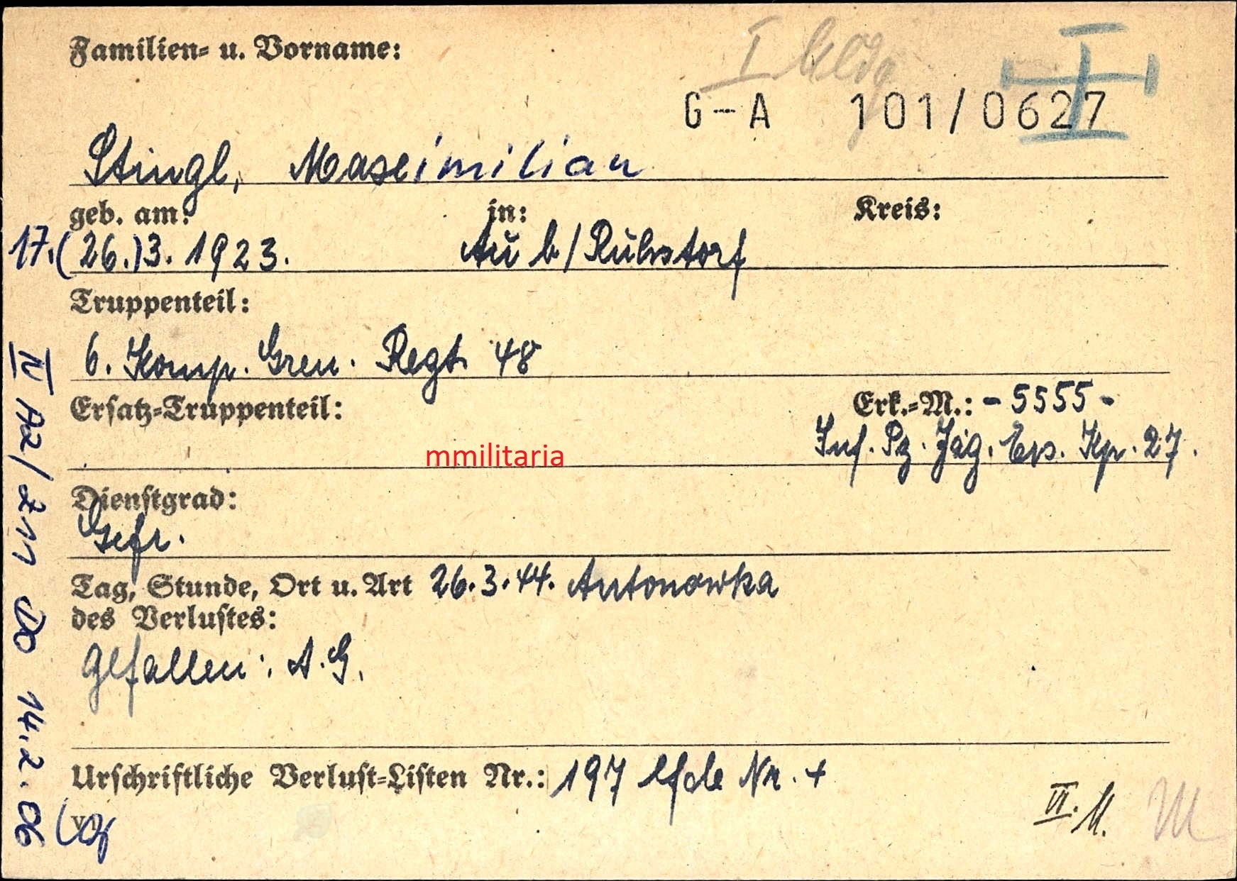 Gefallen am 26.03.1943 bei Antonowka (Ukraine)