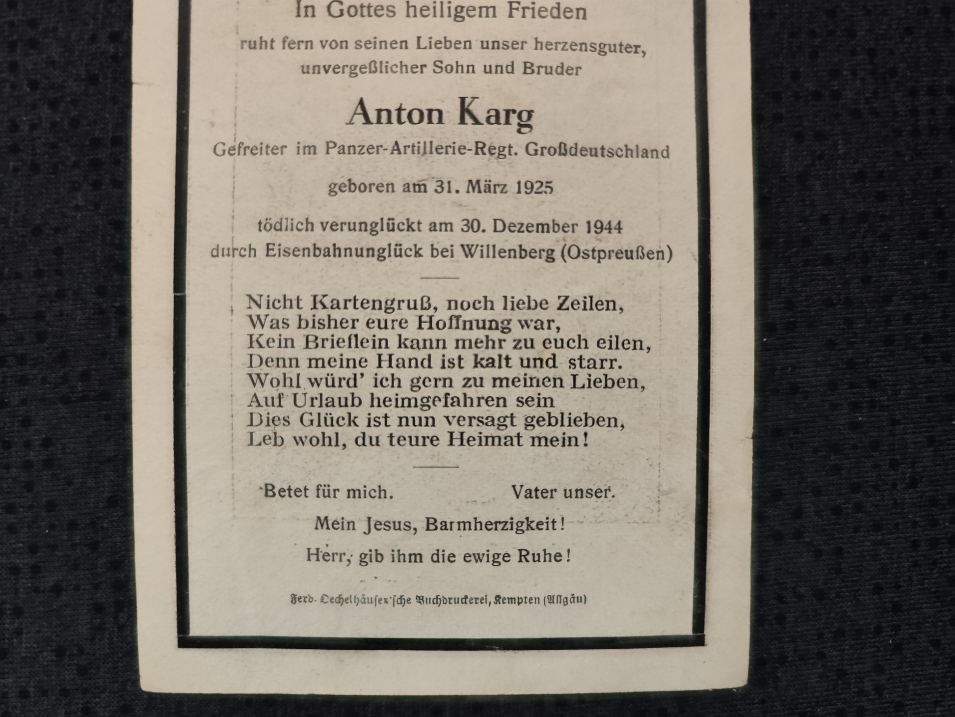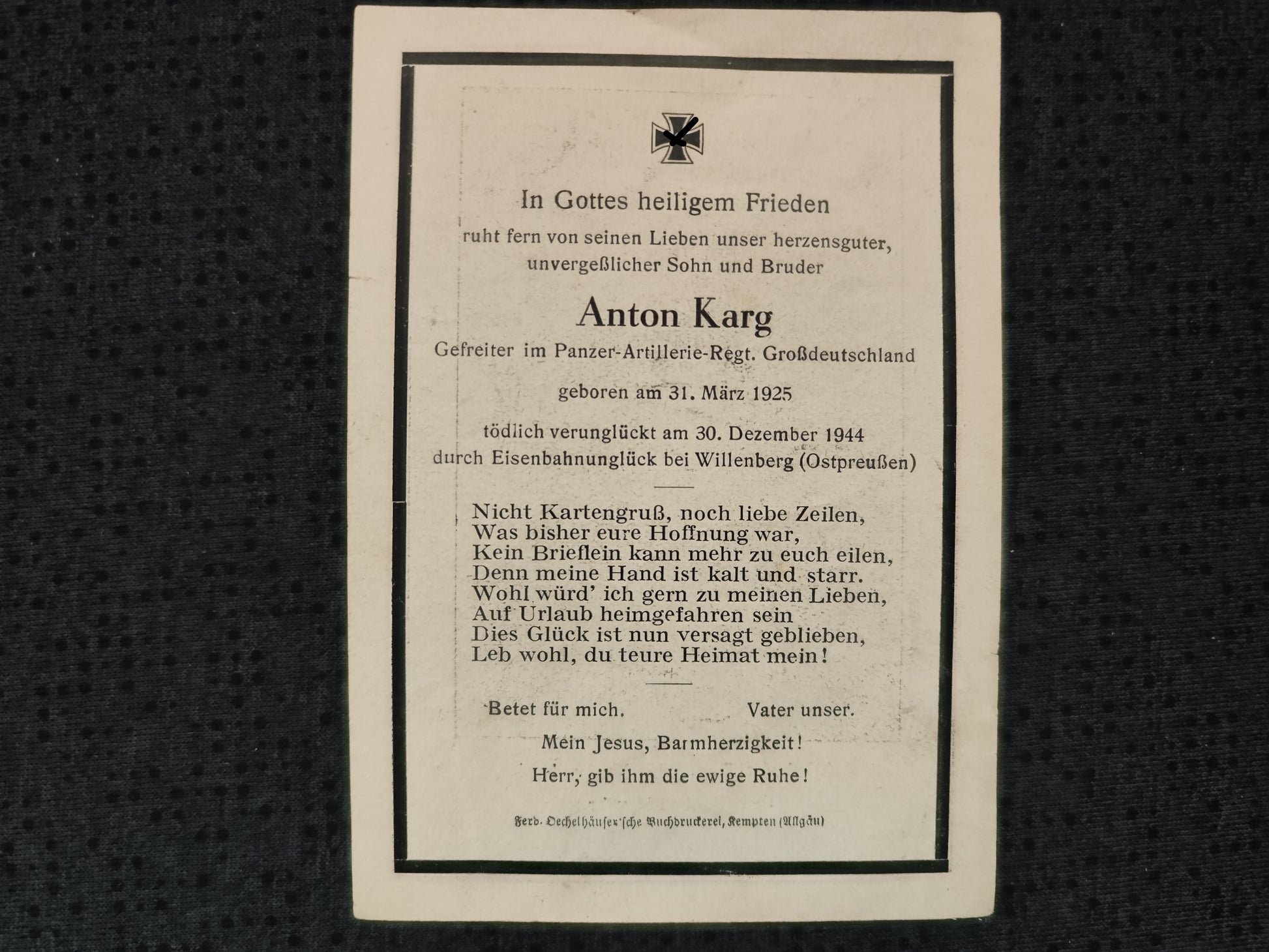 Sterbebild Gefreiter Leiterberg Panzer Artillerie Regt. "Großdeutschland" Willenberg Ostpreußen Polen