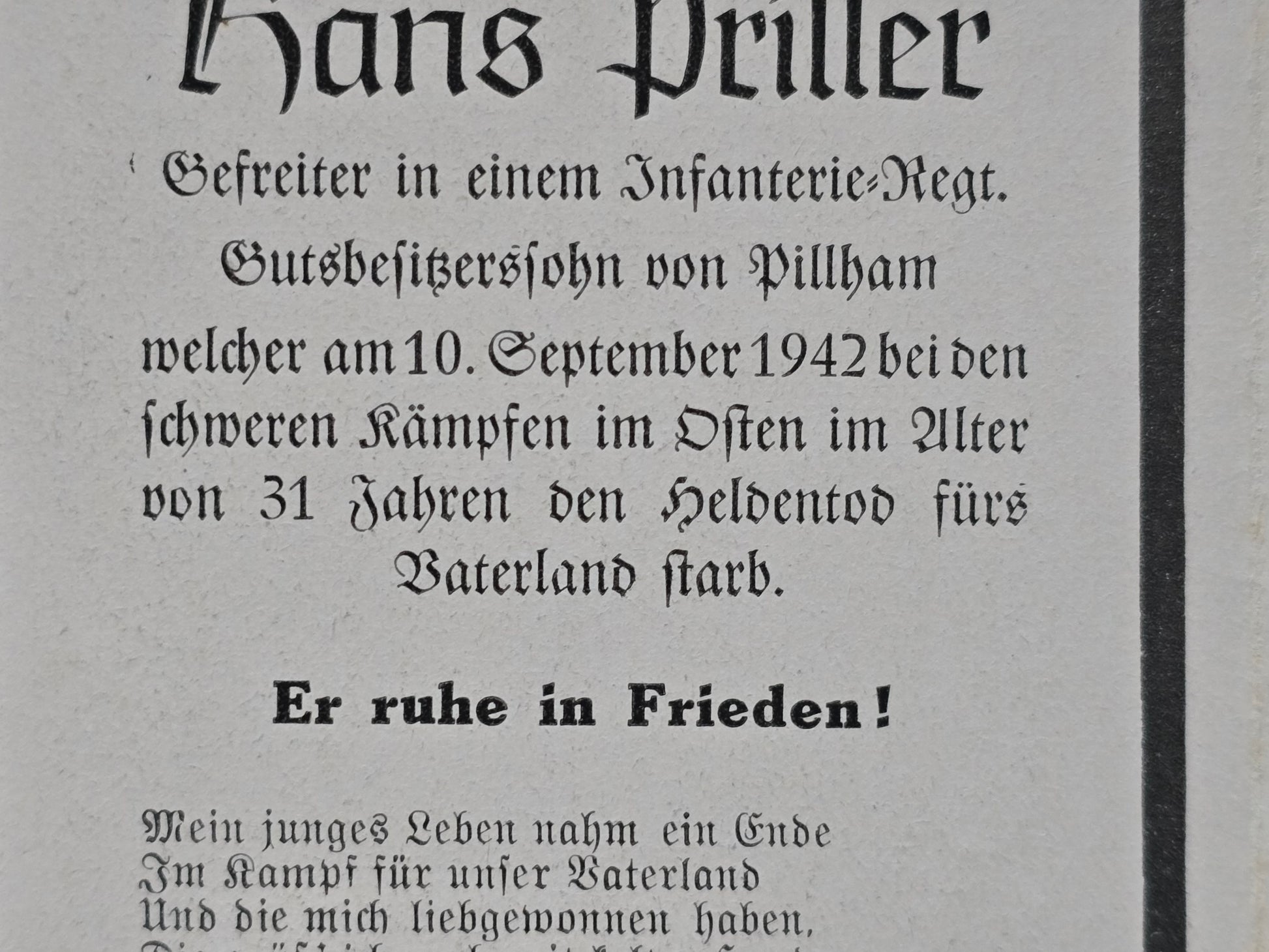 Sterbebild Gefreiter Pillham 2. Komp. Inf. Regt. 320 Krutike Russland