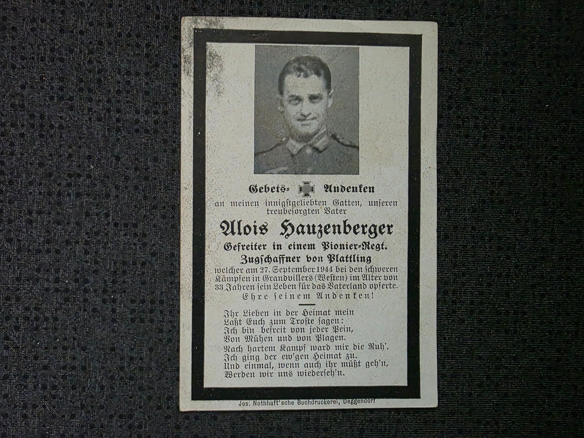Sterbebild Gefreiter Plattling Pionier Regt. Grandvillers Westen Andilly Frankreich