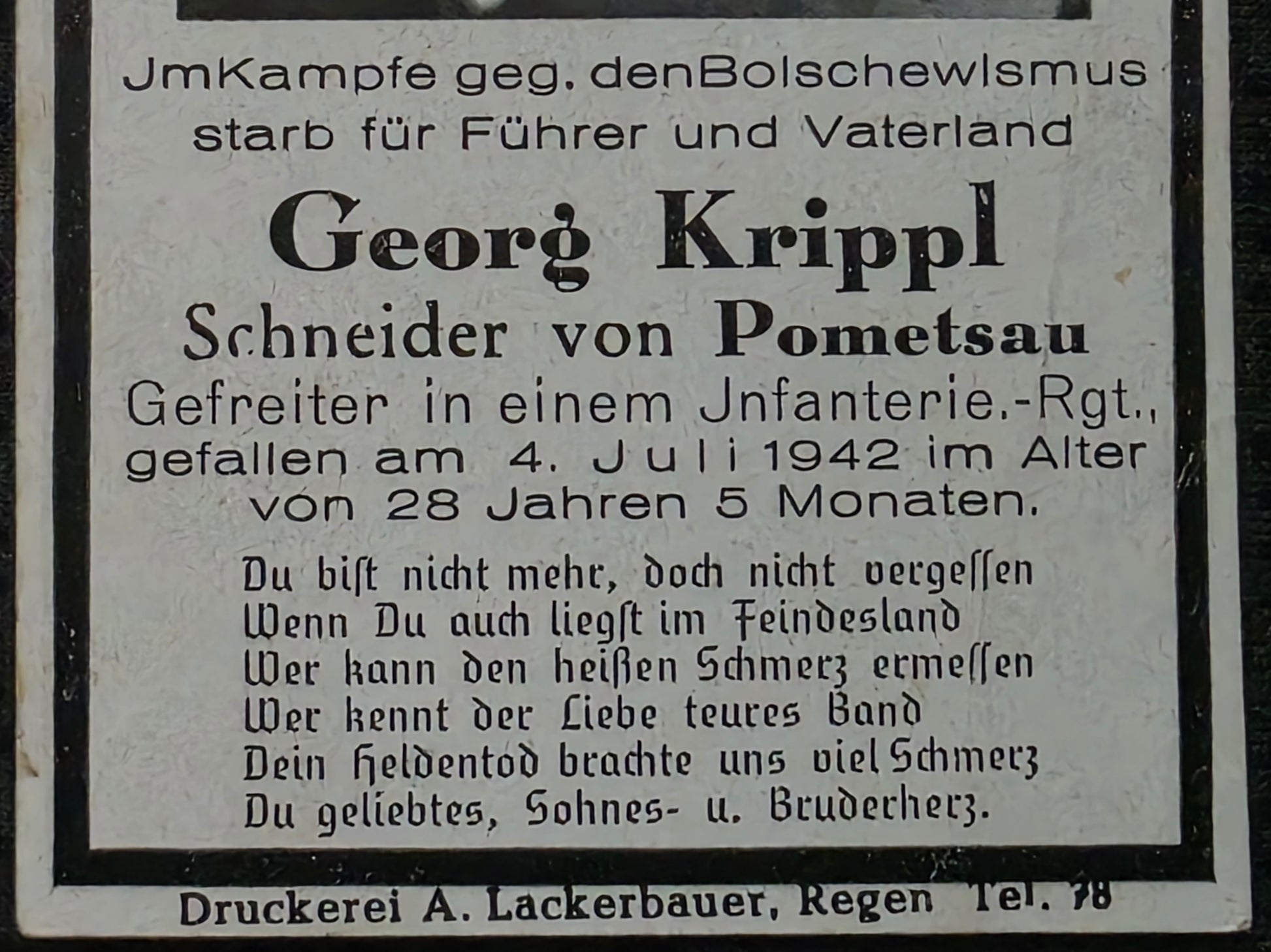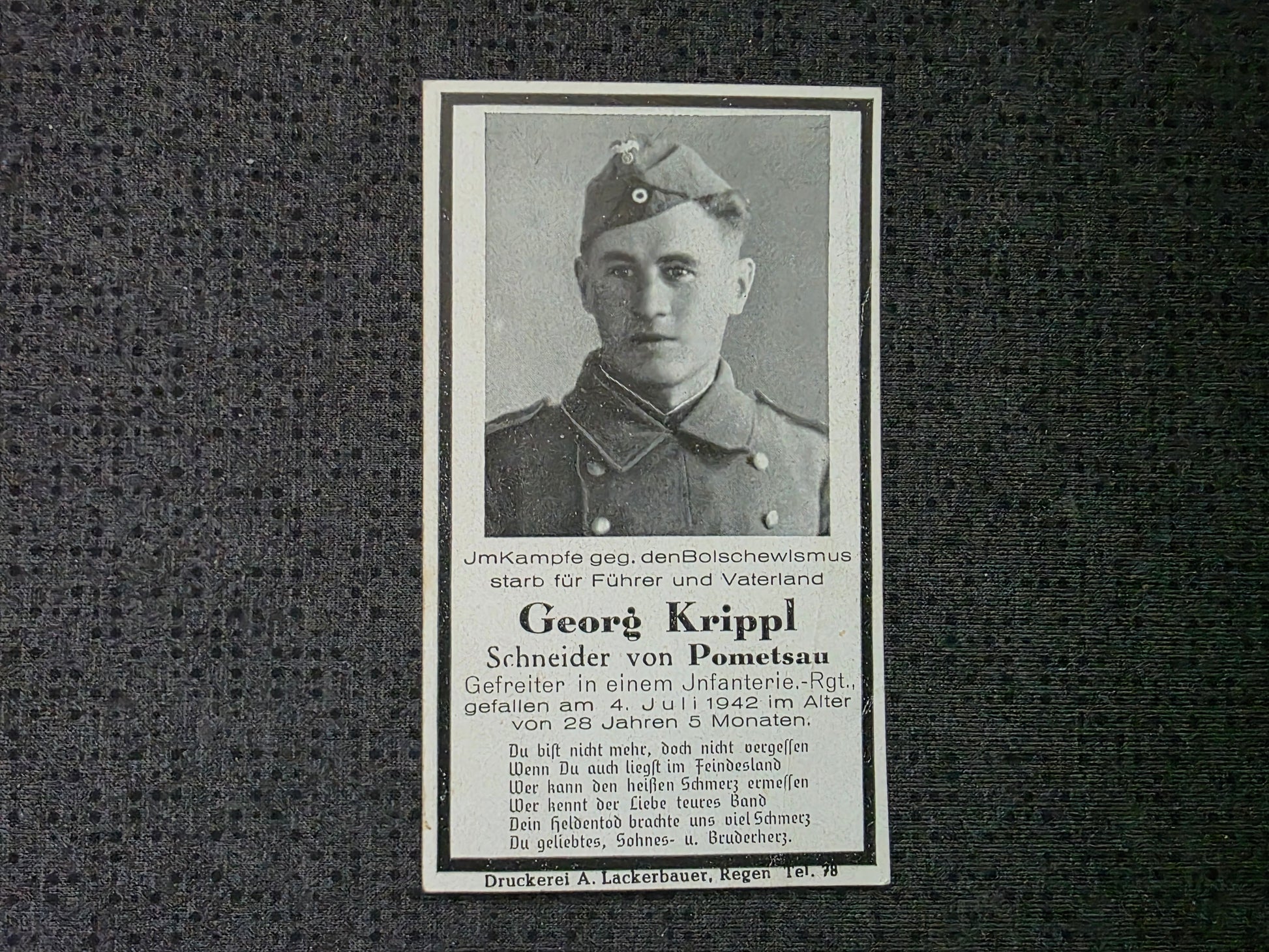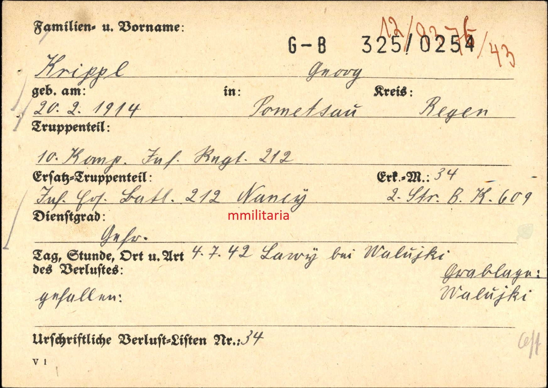 Sterbebild Gefreiter Pometsau 10. Komp. Inf. Regt. 212 Walujki Russland