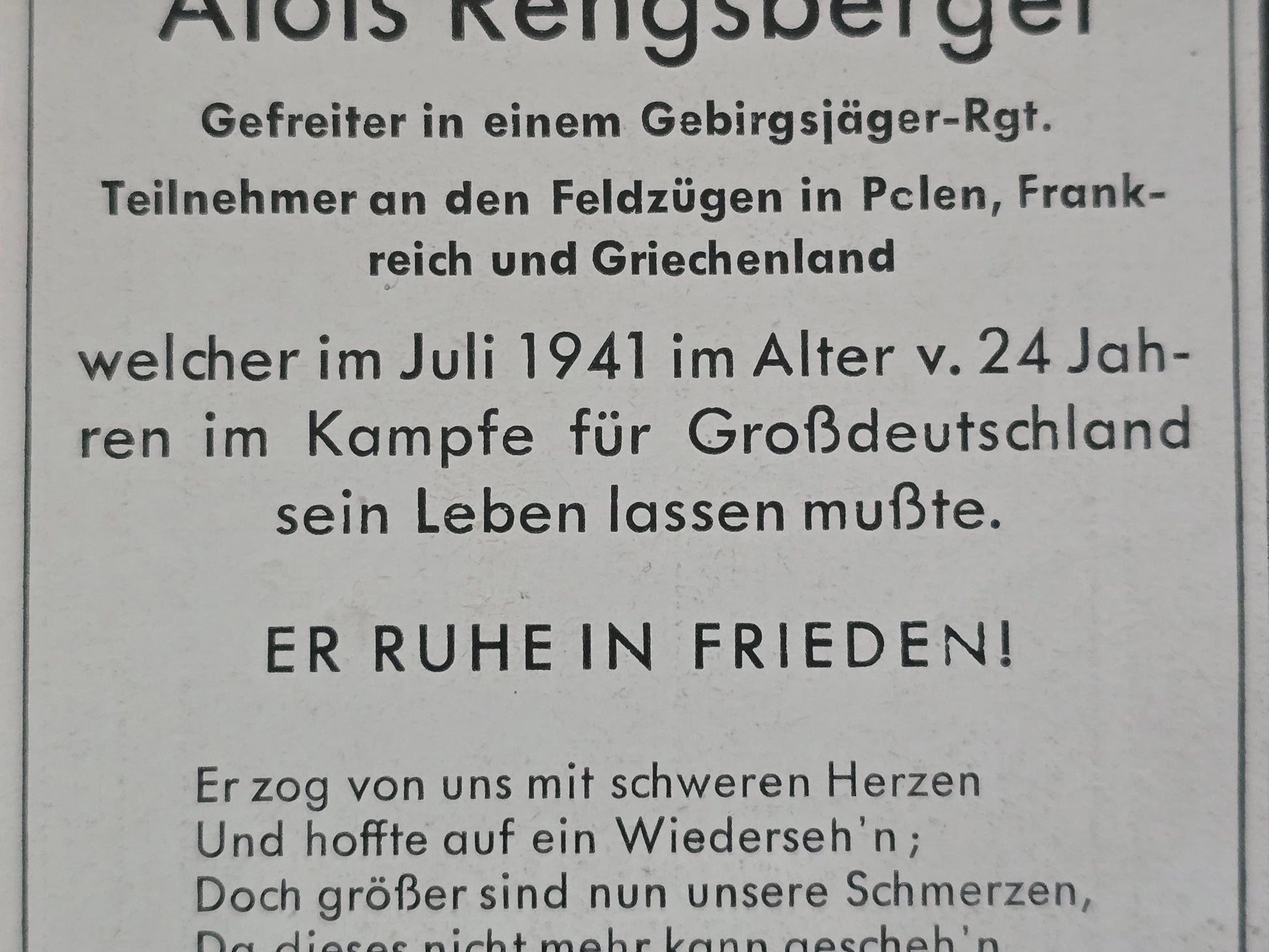 Sterbebild Gefreiter Poppenberg 8. Geb. Jäger Regt. 100 Chalkis Dionyssos-Rapendoza Griechenland