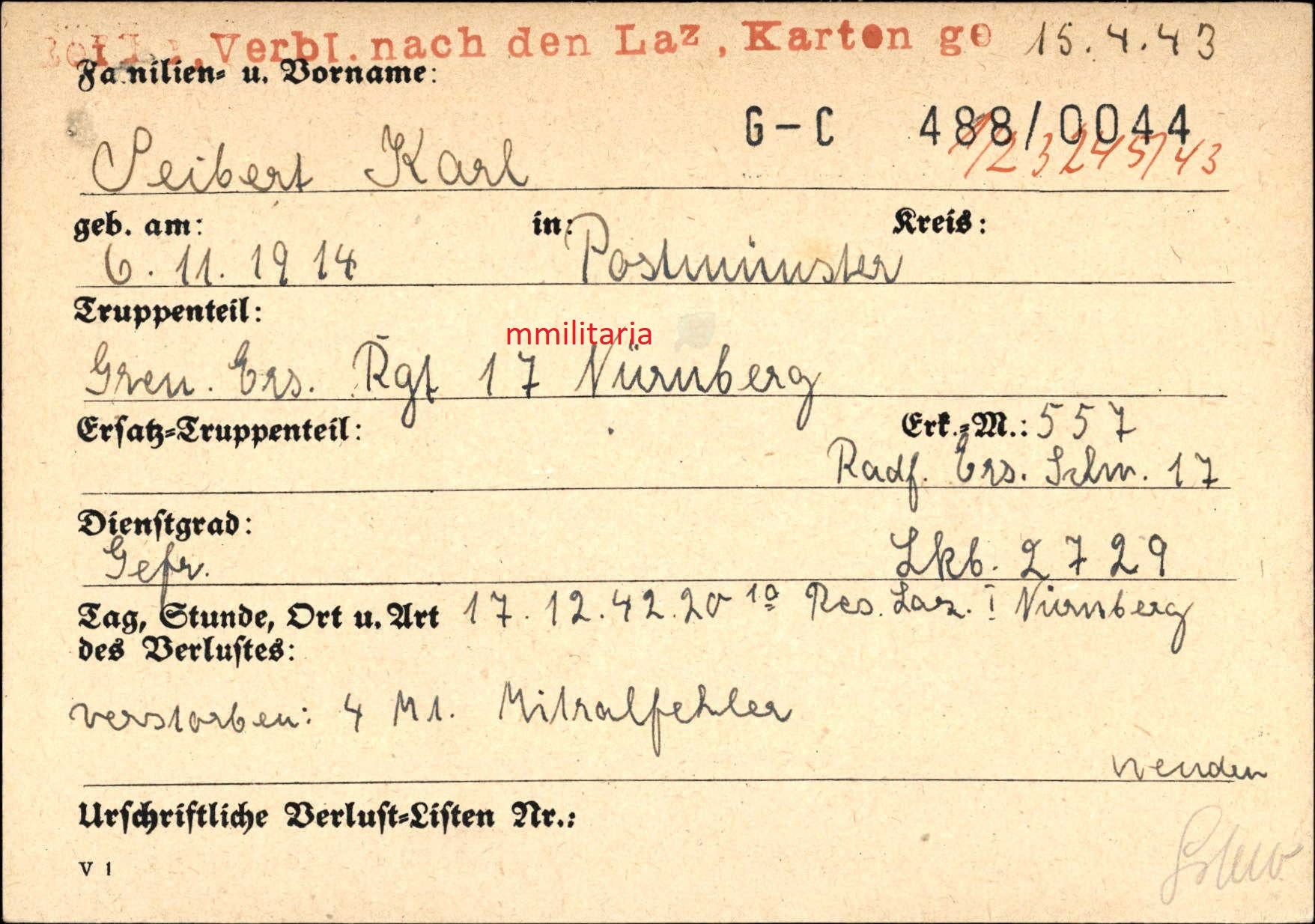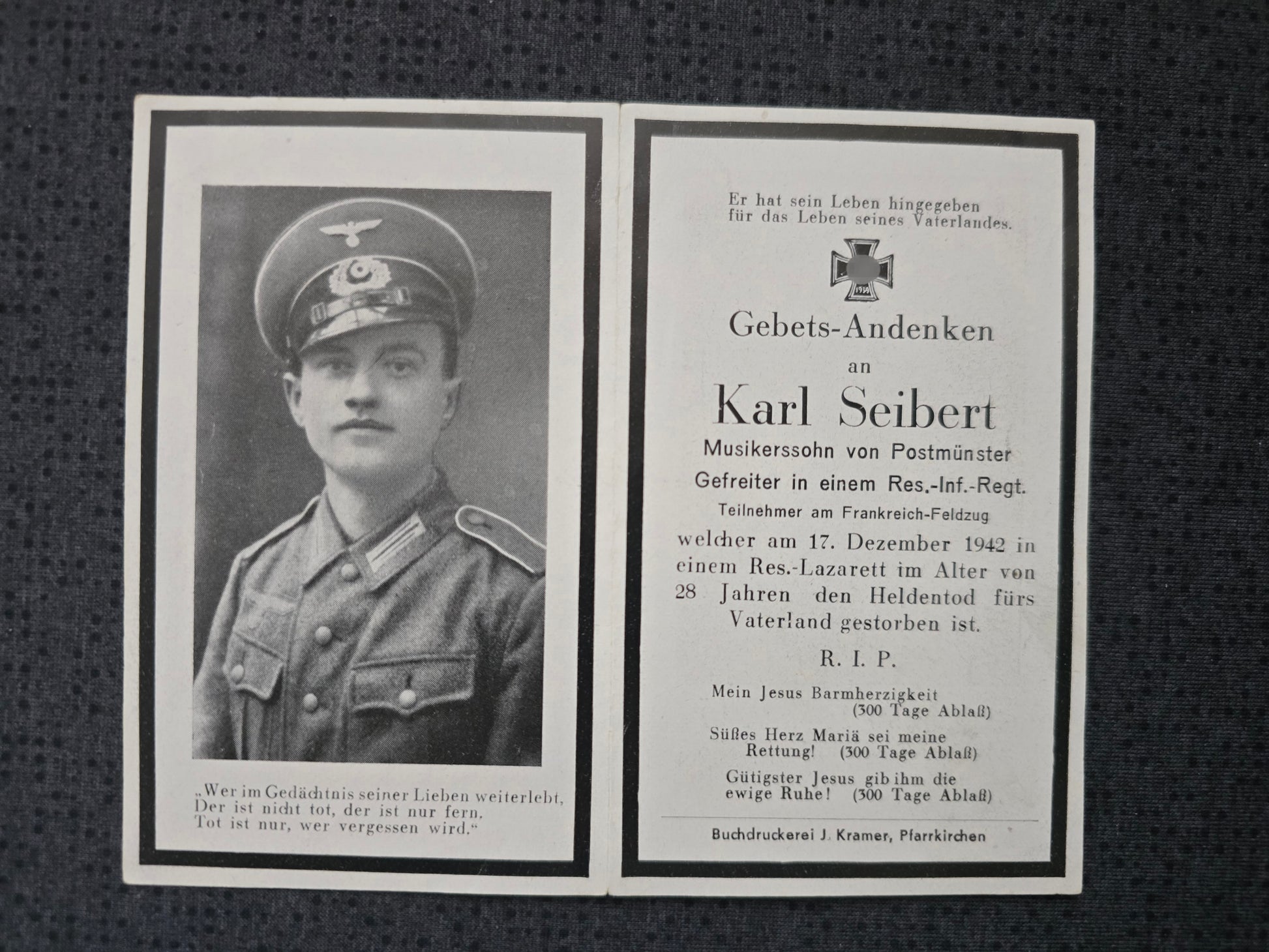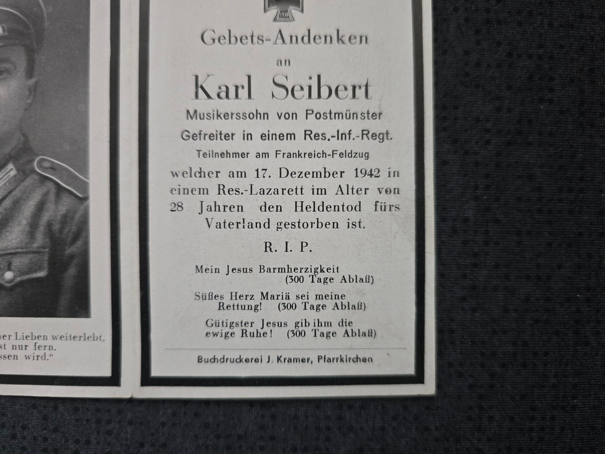 Sterbebild Gefreiter Postmünster Gren. Ersatz Regt. 17 Lazarett Nürnberg Deutschland
