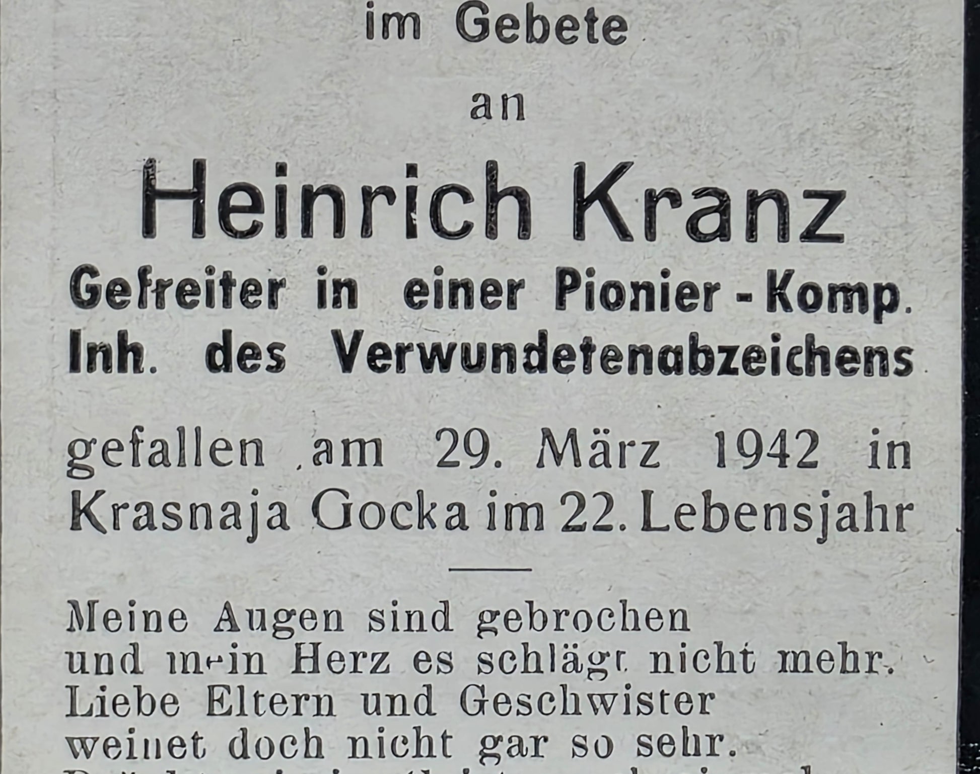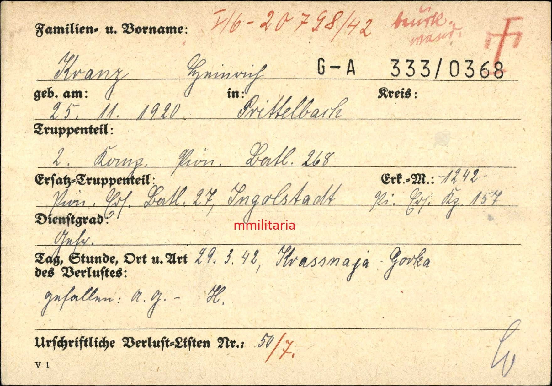 Gefallen am 29.03.1942 in Krasnaja Gorka (Russland)