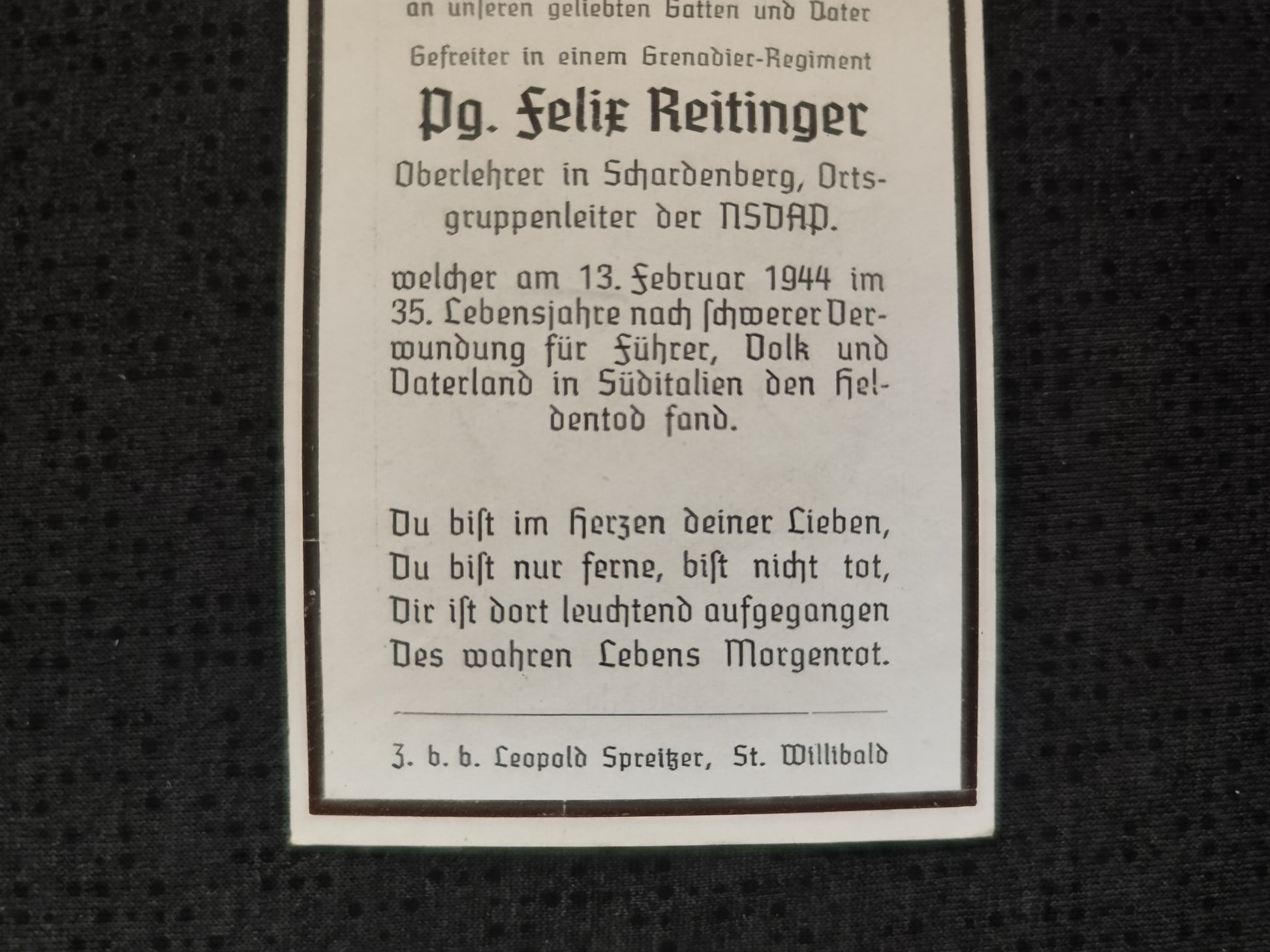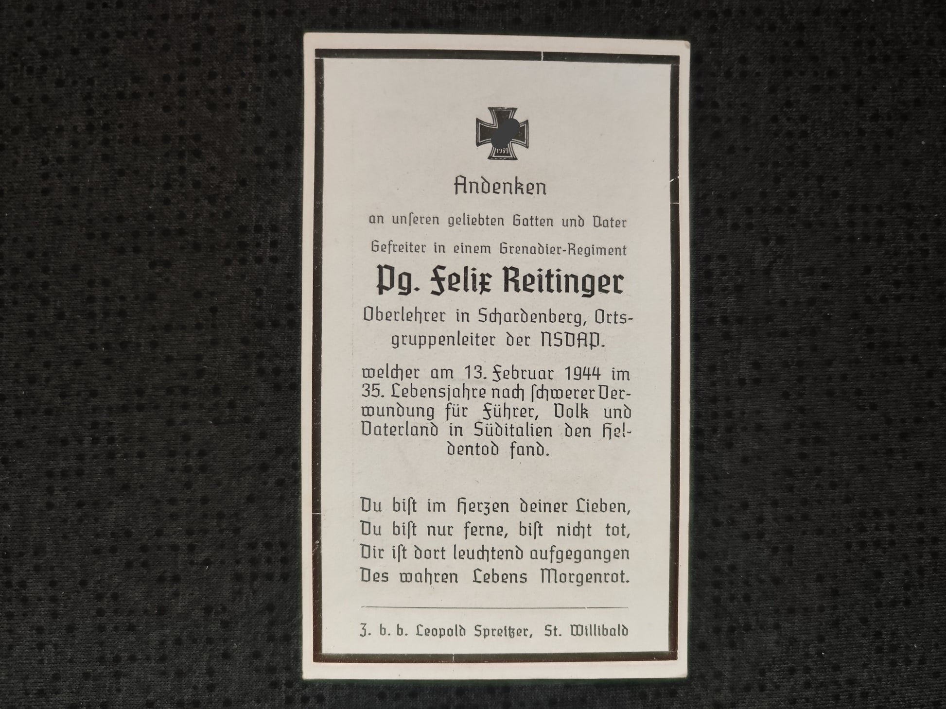 Sterbebild Gefreiter Schardenberg Grenadier Regt. Ortsgruppenleiter NSDAP Cassino Italien