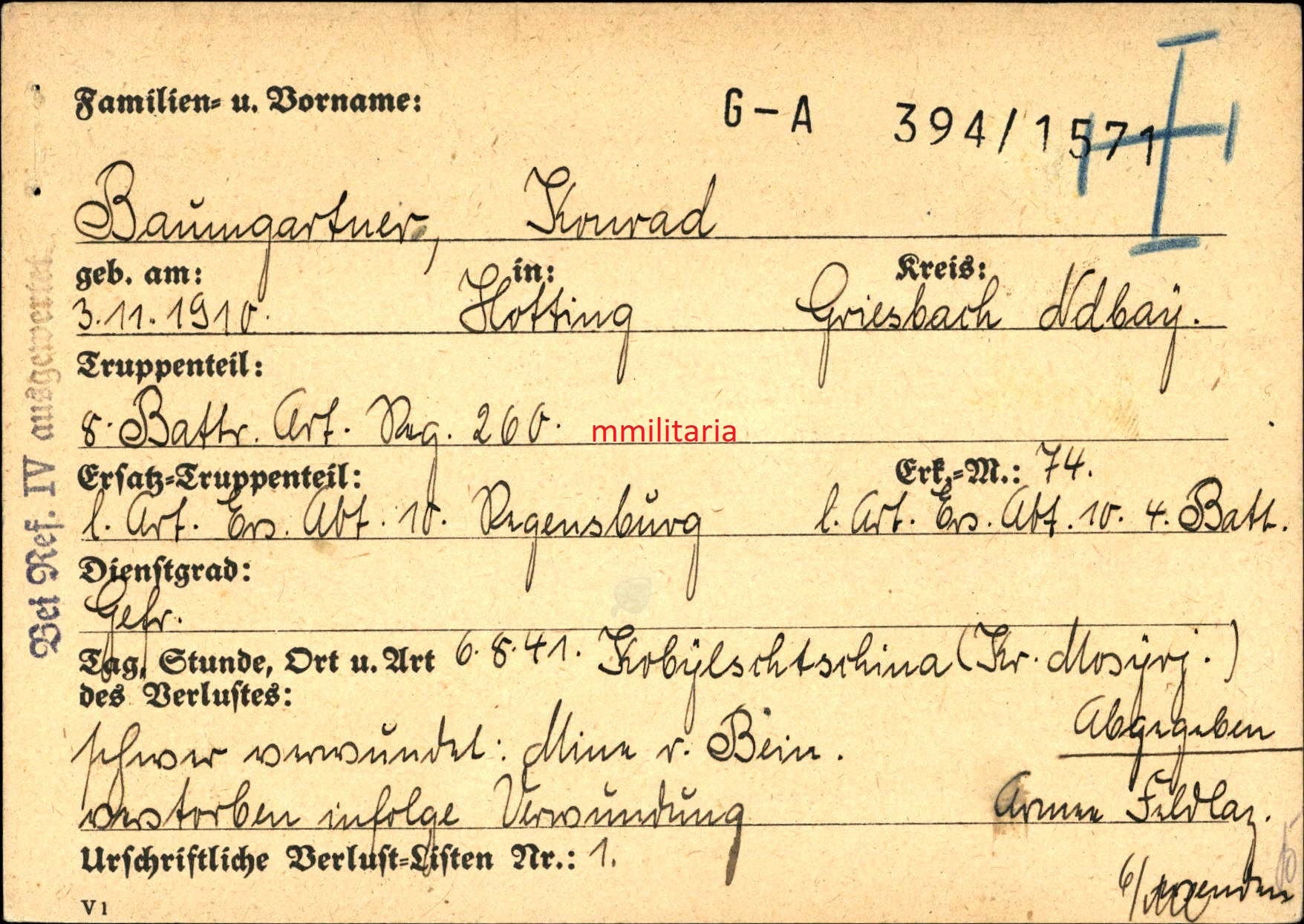 Gefallen am 06.08.1941 bei Kobylschtschina (Weissrussland)