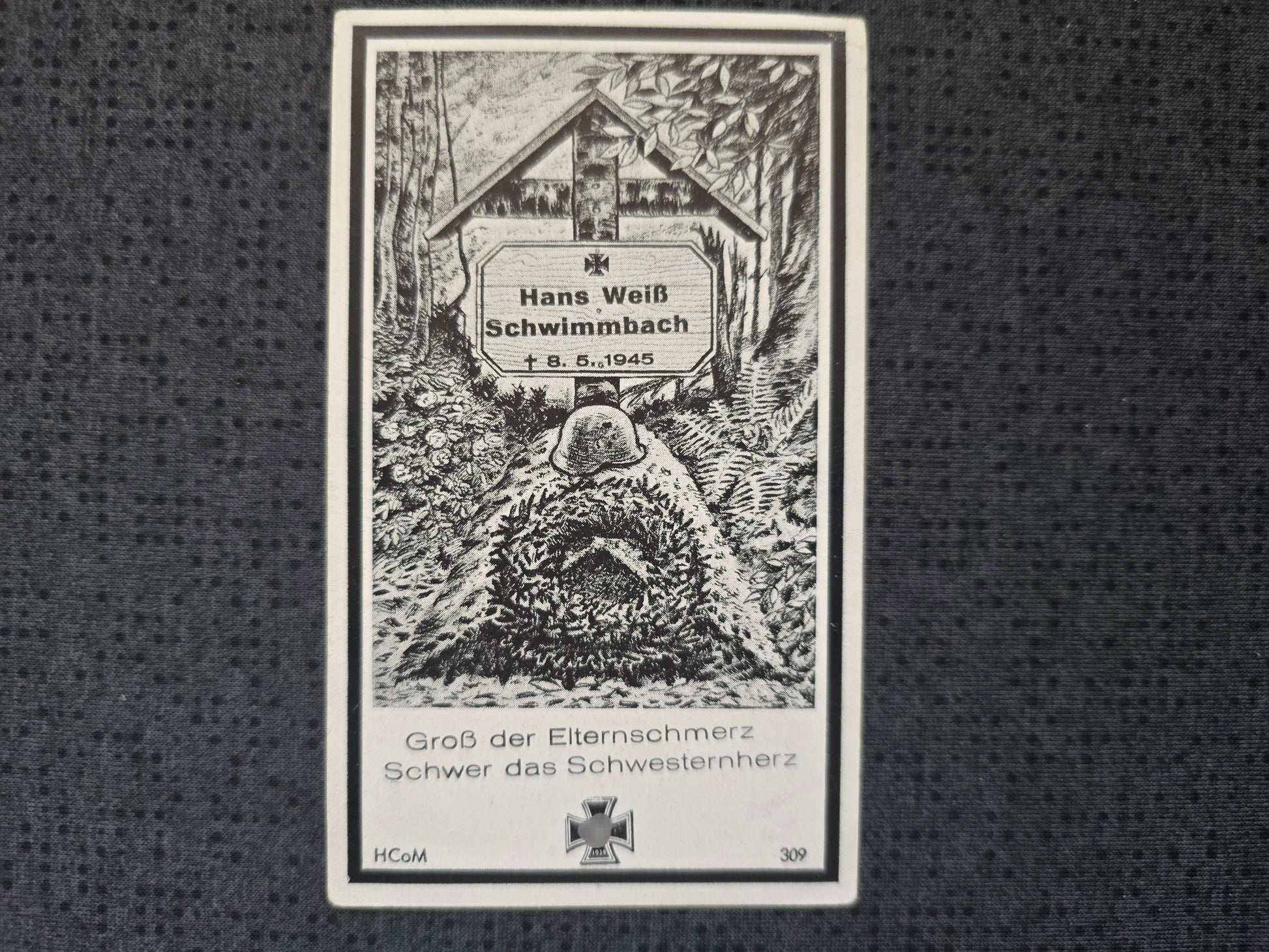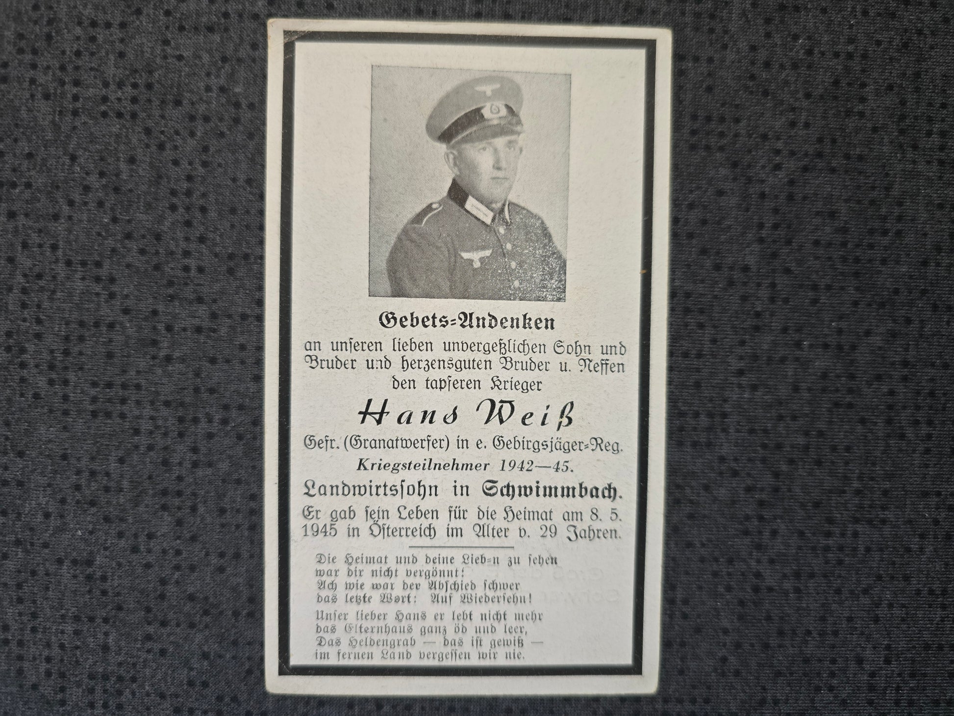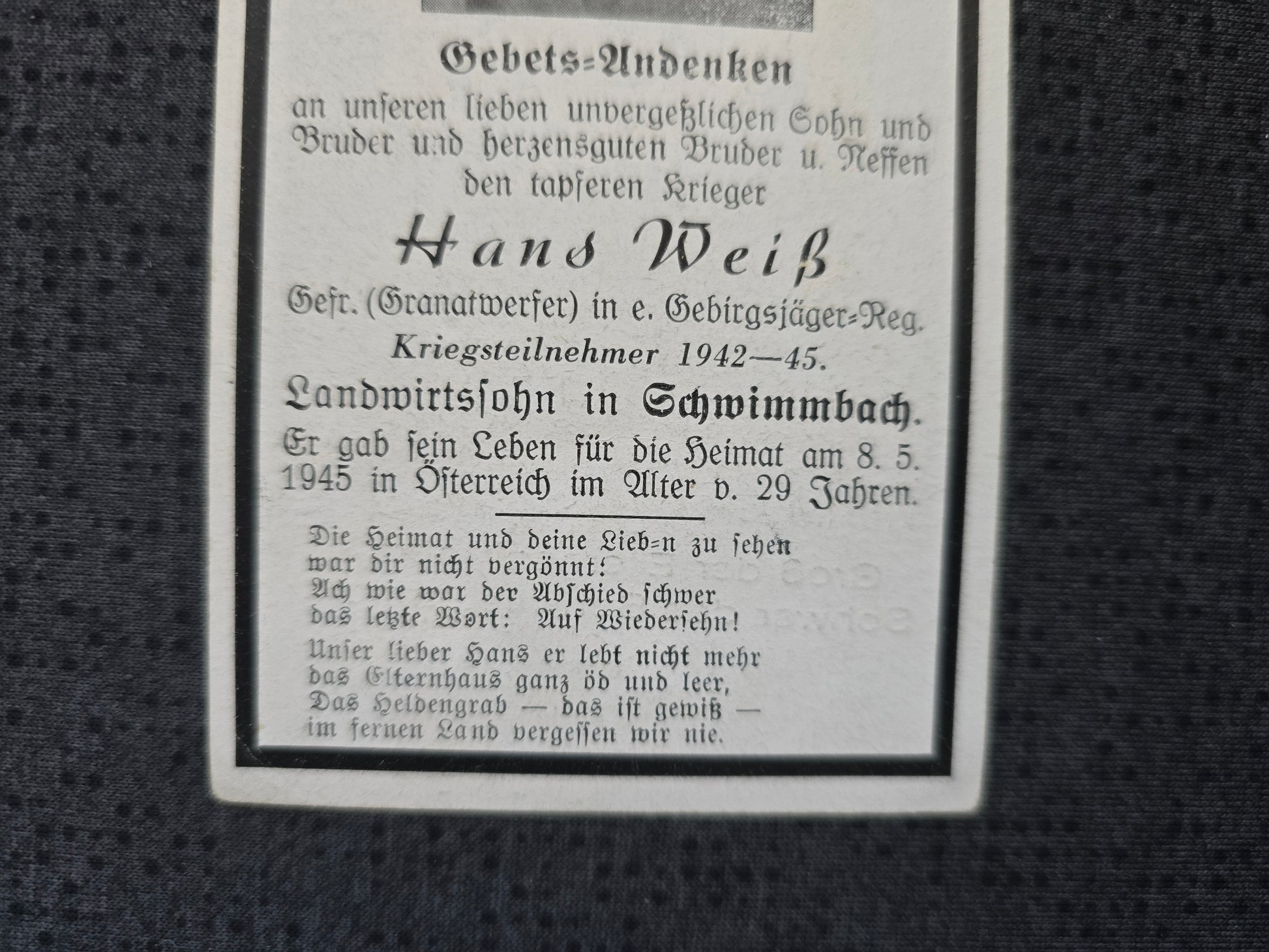 Sterbebild Gefreiter Schwimmbach Granatwerfer Gebirgsjäger Regt. Endkampf 08.05.1945 Österreich