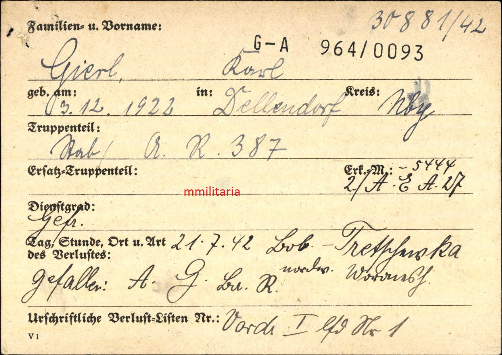 Gefallen am 27.07.1942 bei Treschtschewka (Russland)