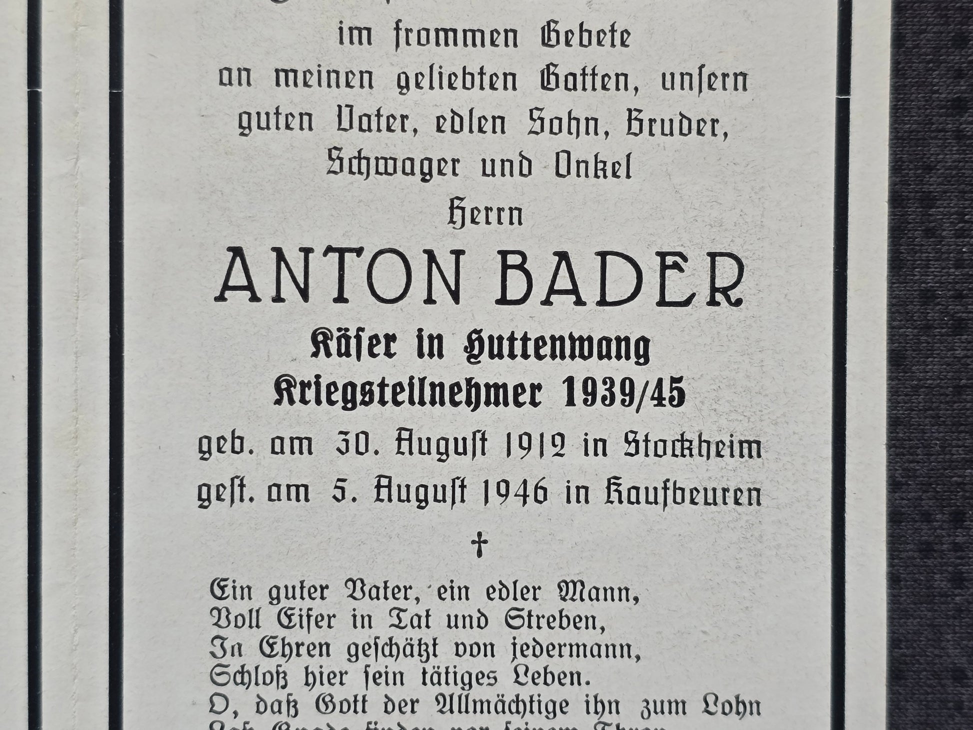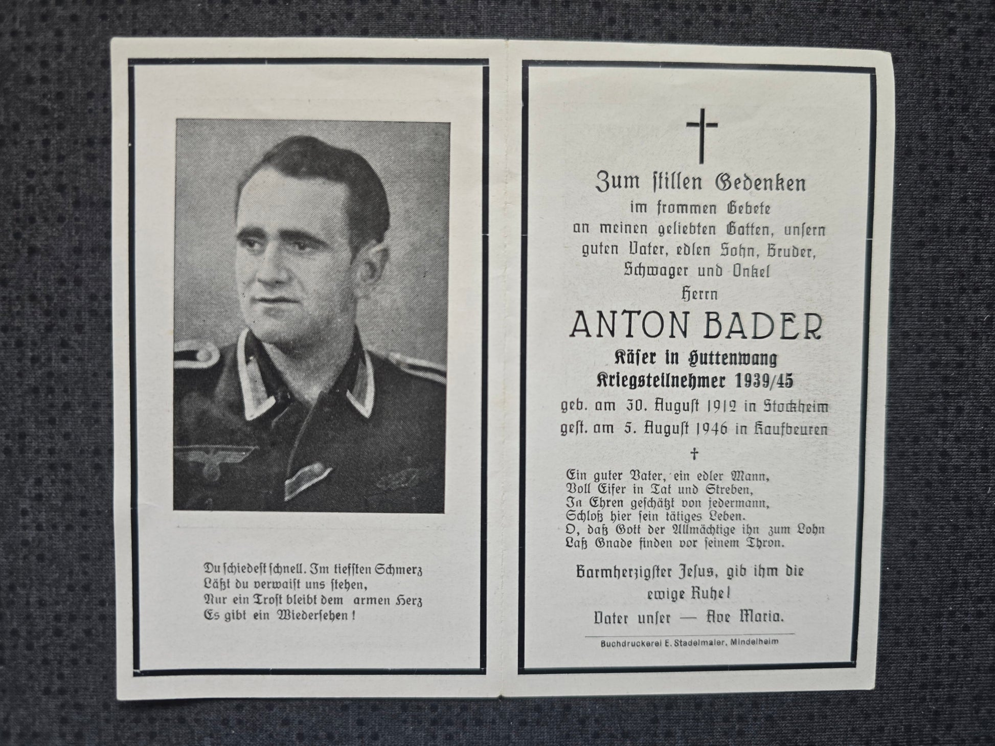 Sterbebild Gefreiter Stockheim Endkampf Kaufbeuren Deutschland