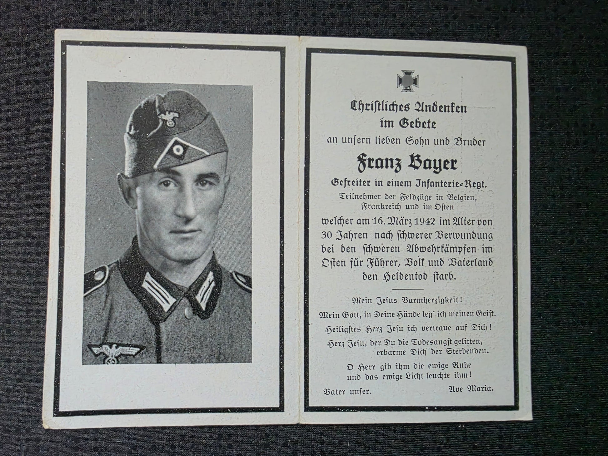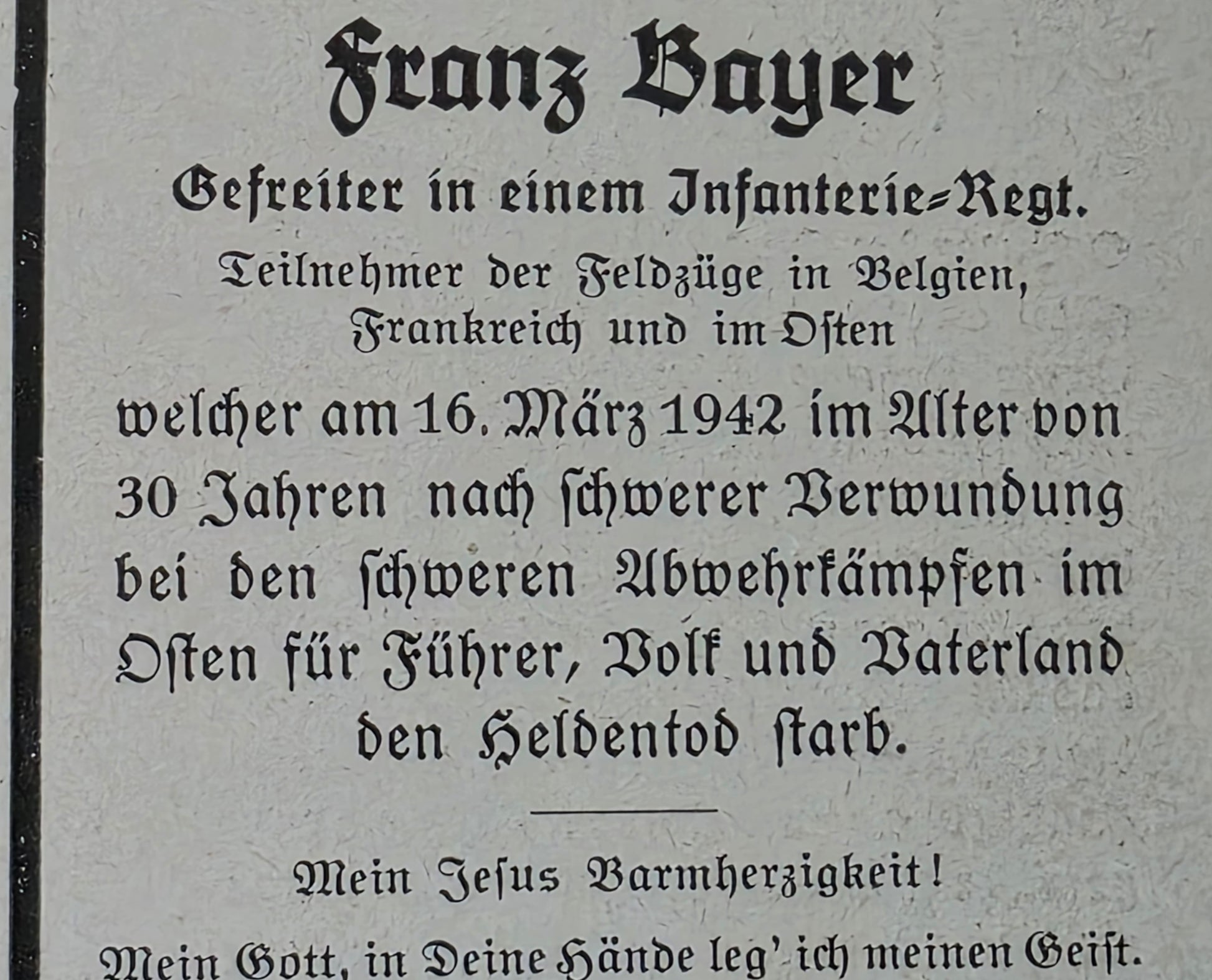 Sterbebild Gefreiter Tachertling 4. Inf. Regt. 689 Klemjatina Rshew Russland