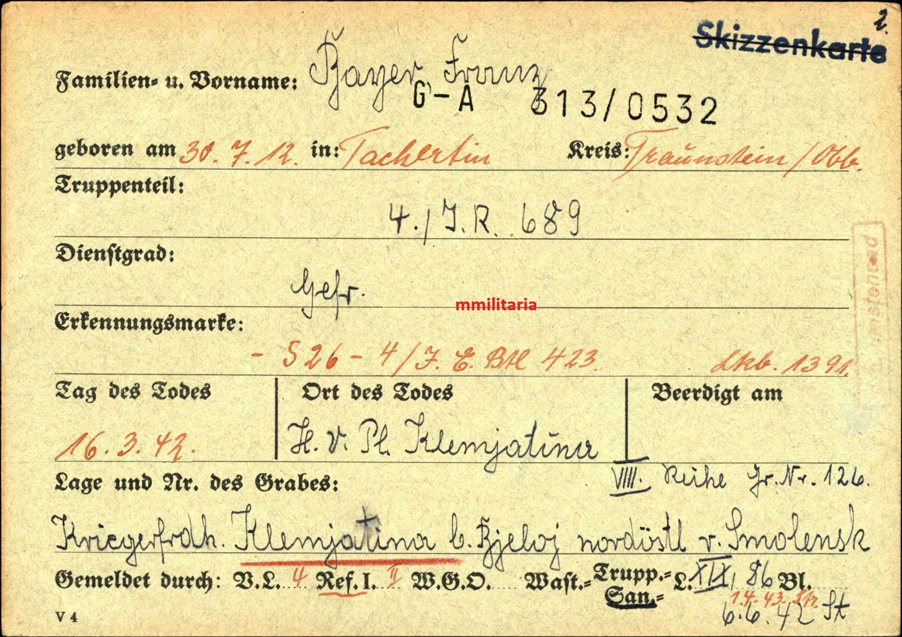 Gefallen am 16.03.1942 in Klemjatina (Russland)
