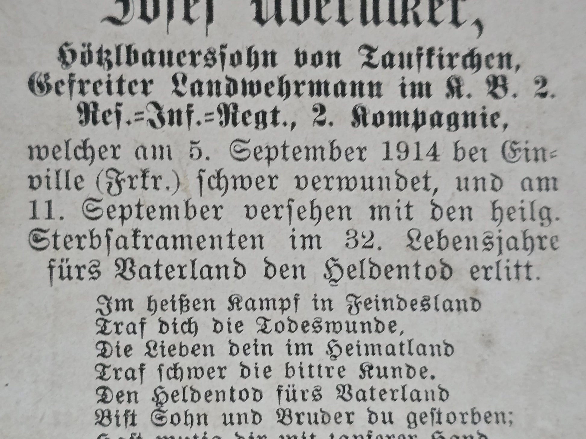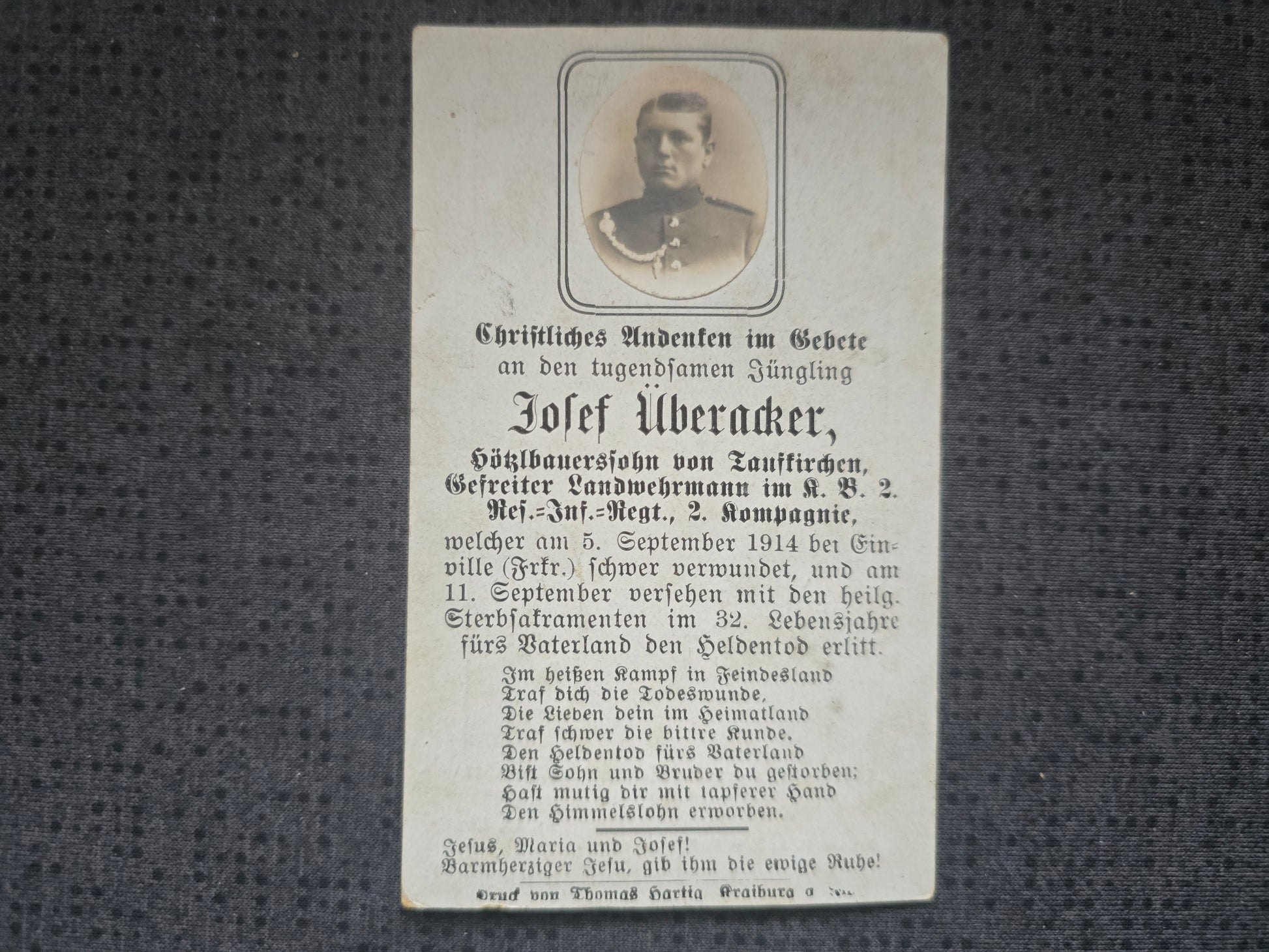 Sterbebild Gefreiter Taufkirchen 2. Komp. KB Res. Inf. Regt. 2 Echtfoto Einville Gerbéviller Frankreich