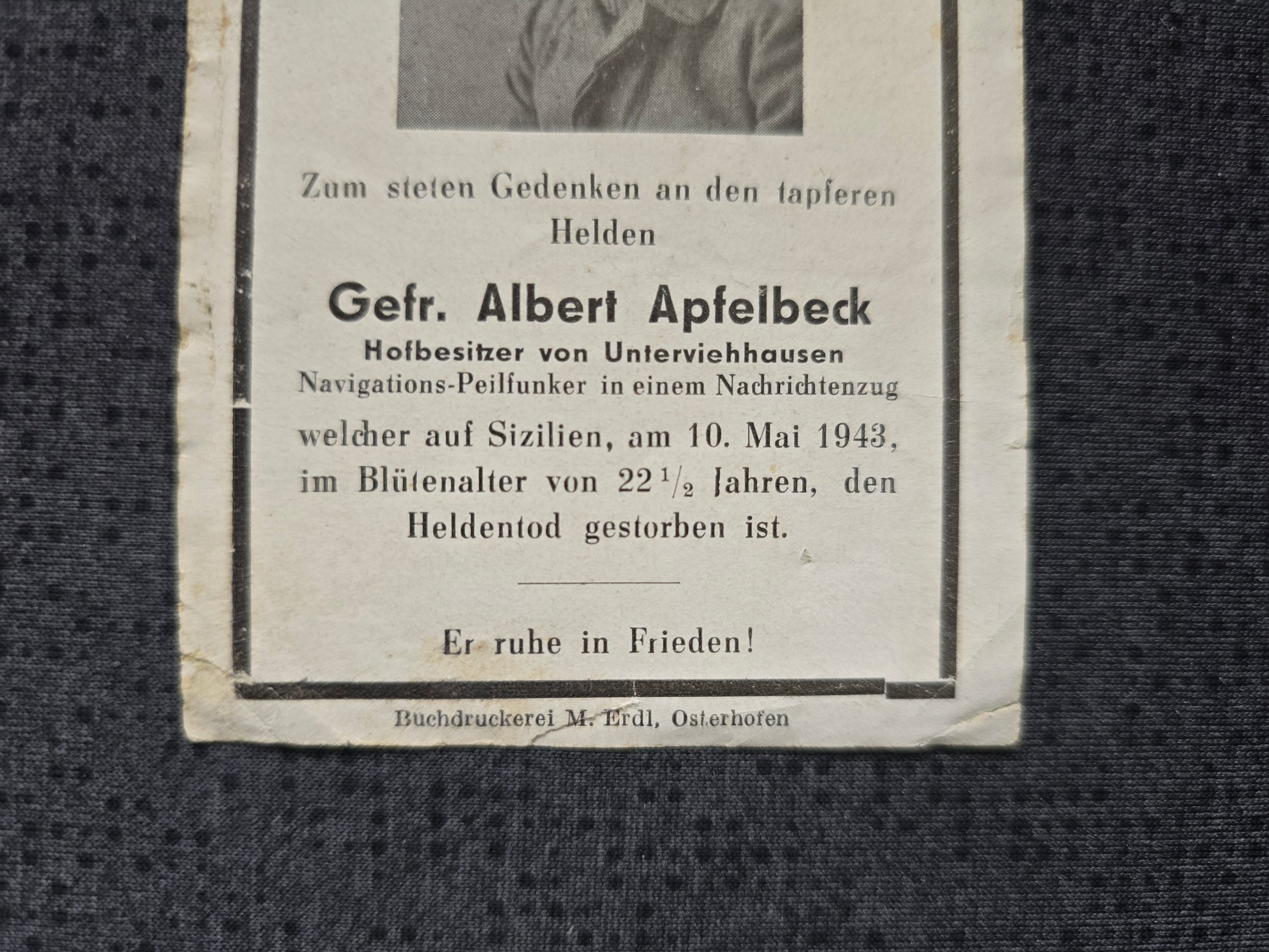 Sterbebild Gefreiter Unterviehhausen 6. Ausbildungskompanie Luftnachrichten Schule 1 Nordhausen Milo Sizilien Italien