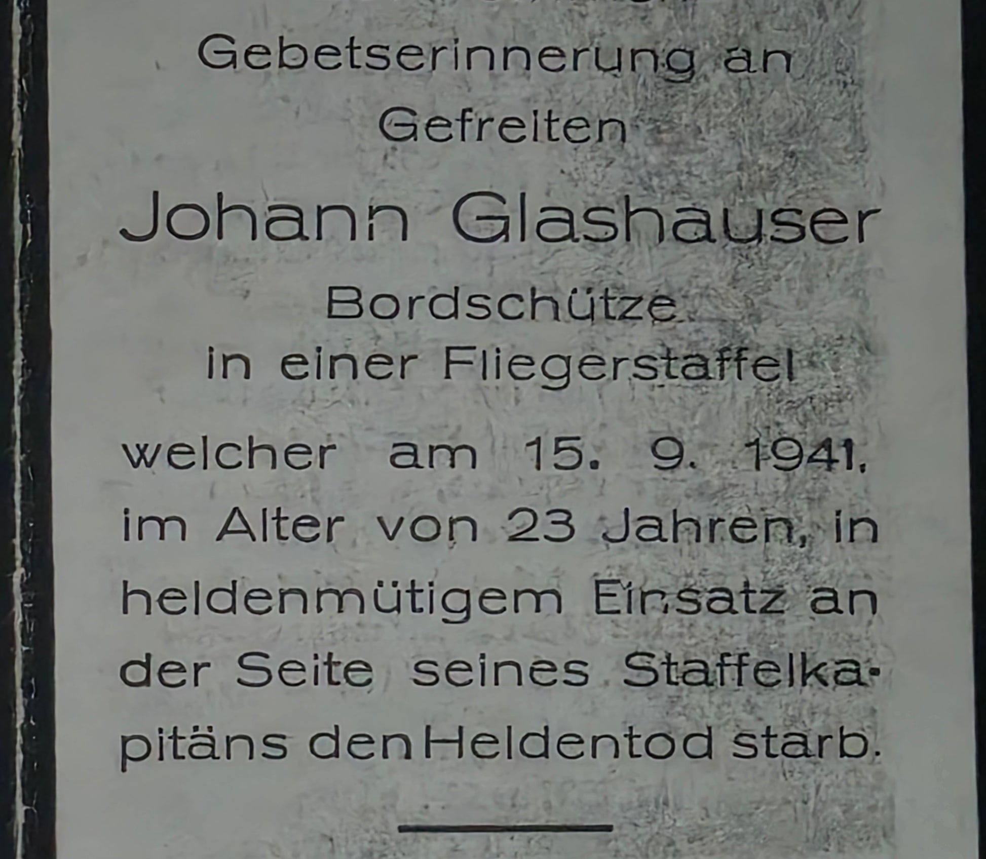 Sterbebild Gefreiter Vilshofen Bordschütze 4./KG-4 "General Wever" Ostufer der Newa Russland