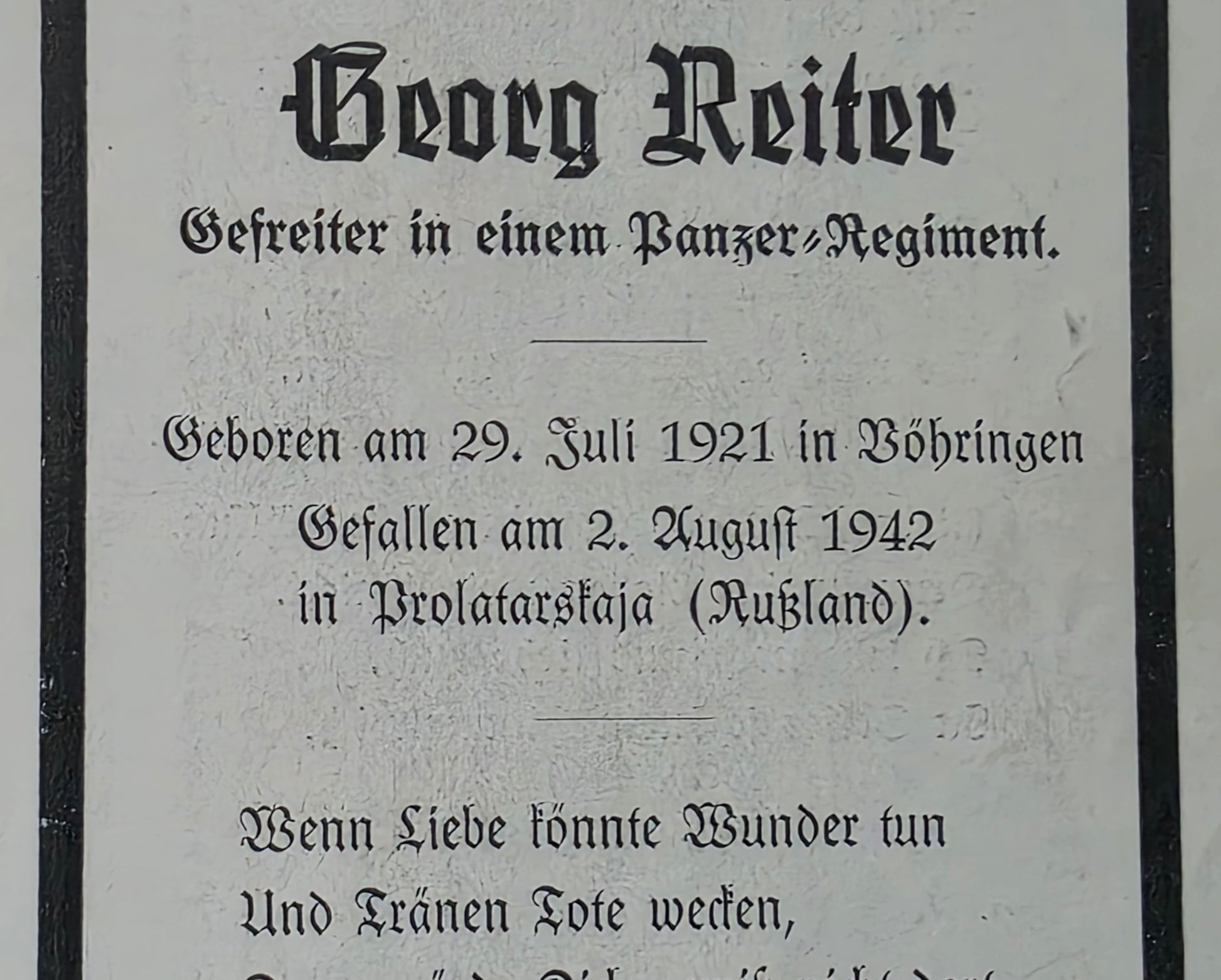 Sterbebild Gefreiter Vöhringen Stab Panzer Regt. 201 Proletarskaja Russland