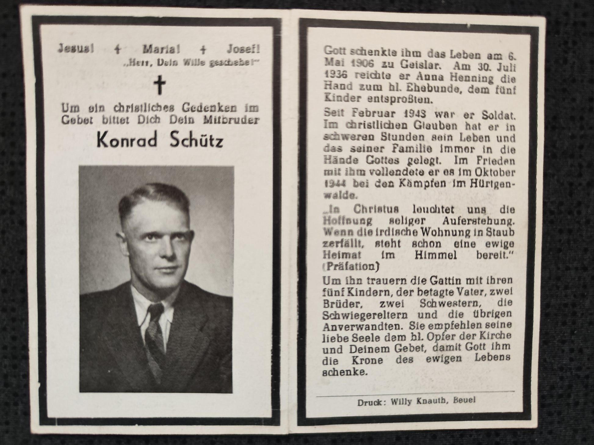 Sterbebild Gefreiter Geislar/Bonn Westfront Hürtgenwald Nordeifel Aachen