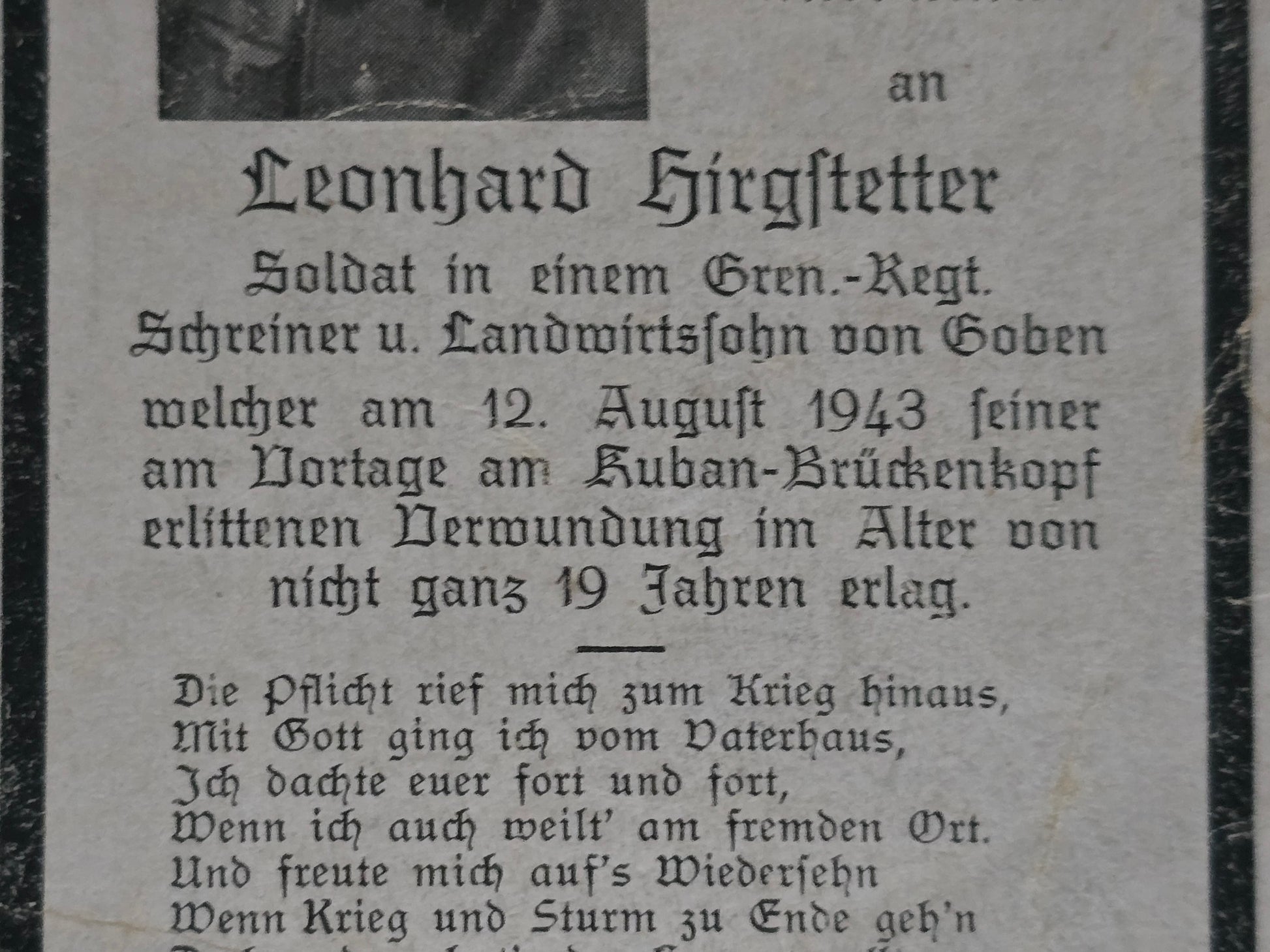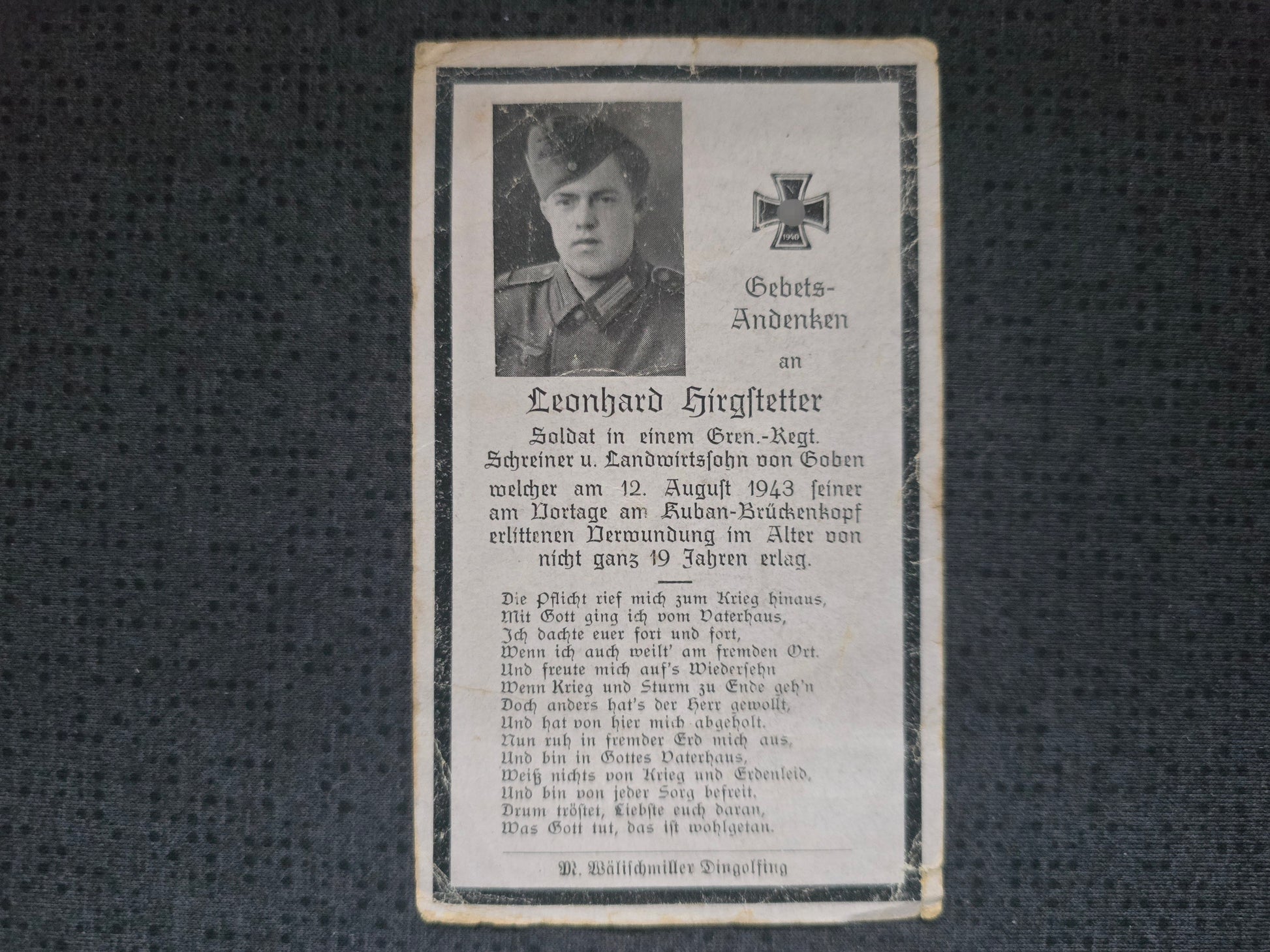 Sterbebild Grenadier Bonbruck 7. Gren. Regt. 290 Kuban-Brückenkopf Krasnodar Russland