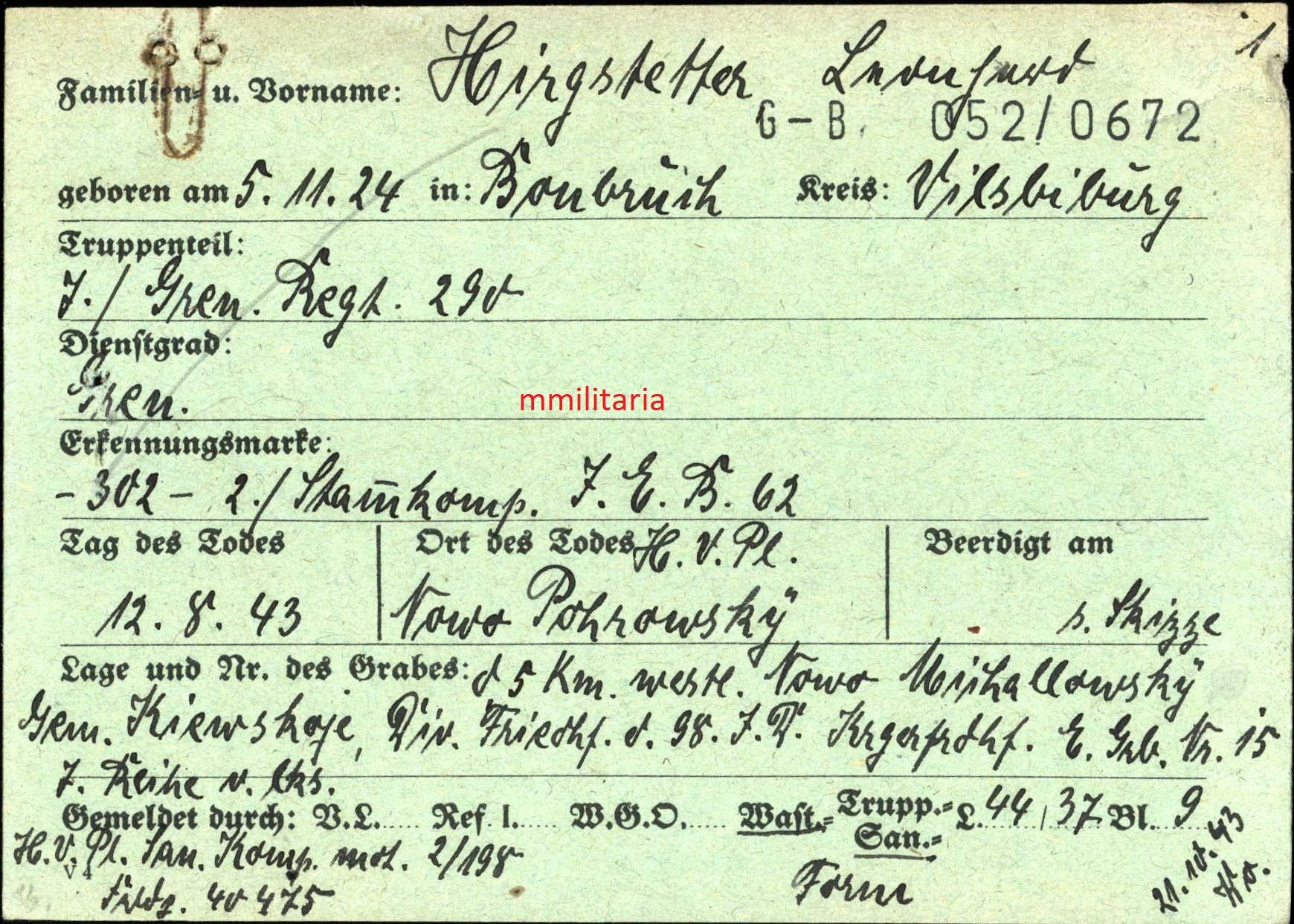 Gefallen am 12.08.1943 am Kubanbrückenkopf (Russland)