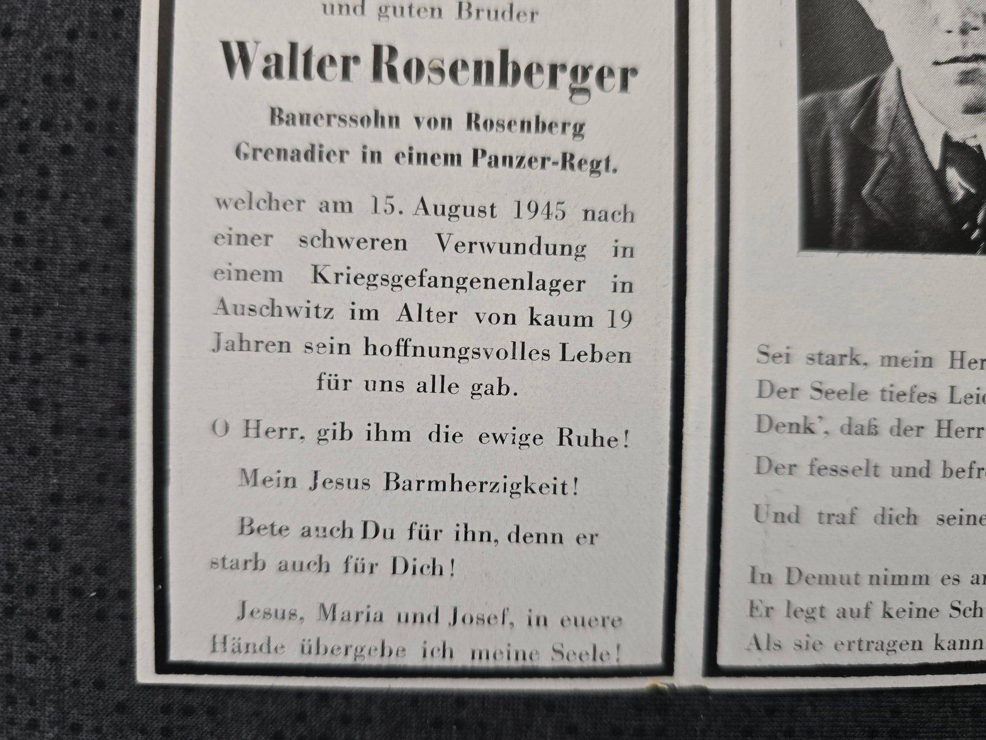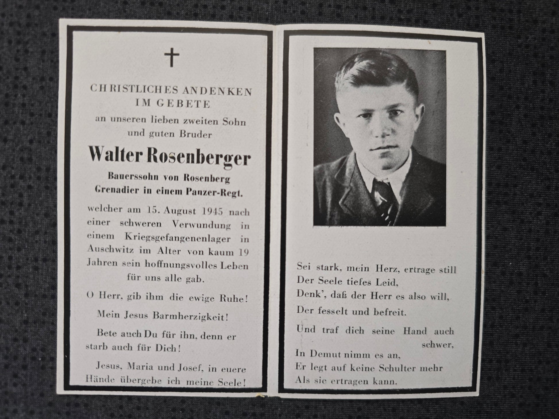 Sterbebild Grenadier Rosenberg Panzer Regt. Kgf.Laz.2020 Auschwitz Oswiecim Polen