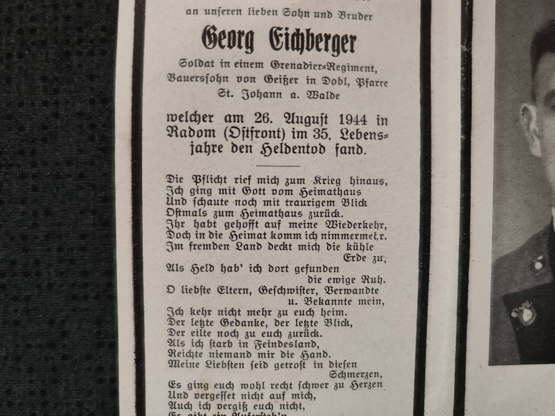 Sterbebild Grenadier St. Johann 7. Komp. Gren. Regt. 55 Leka Radom Polen