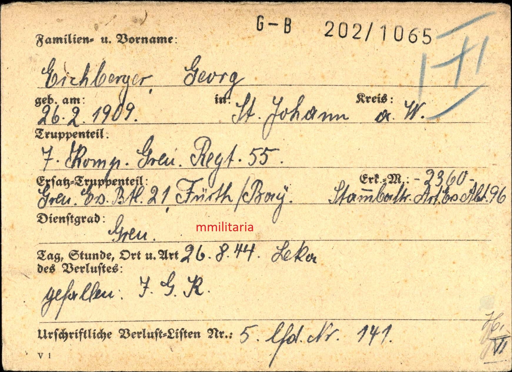 Grenadier 7. Komp. Gren. Regt. 55