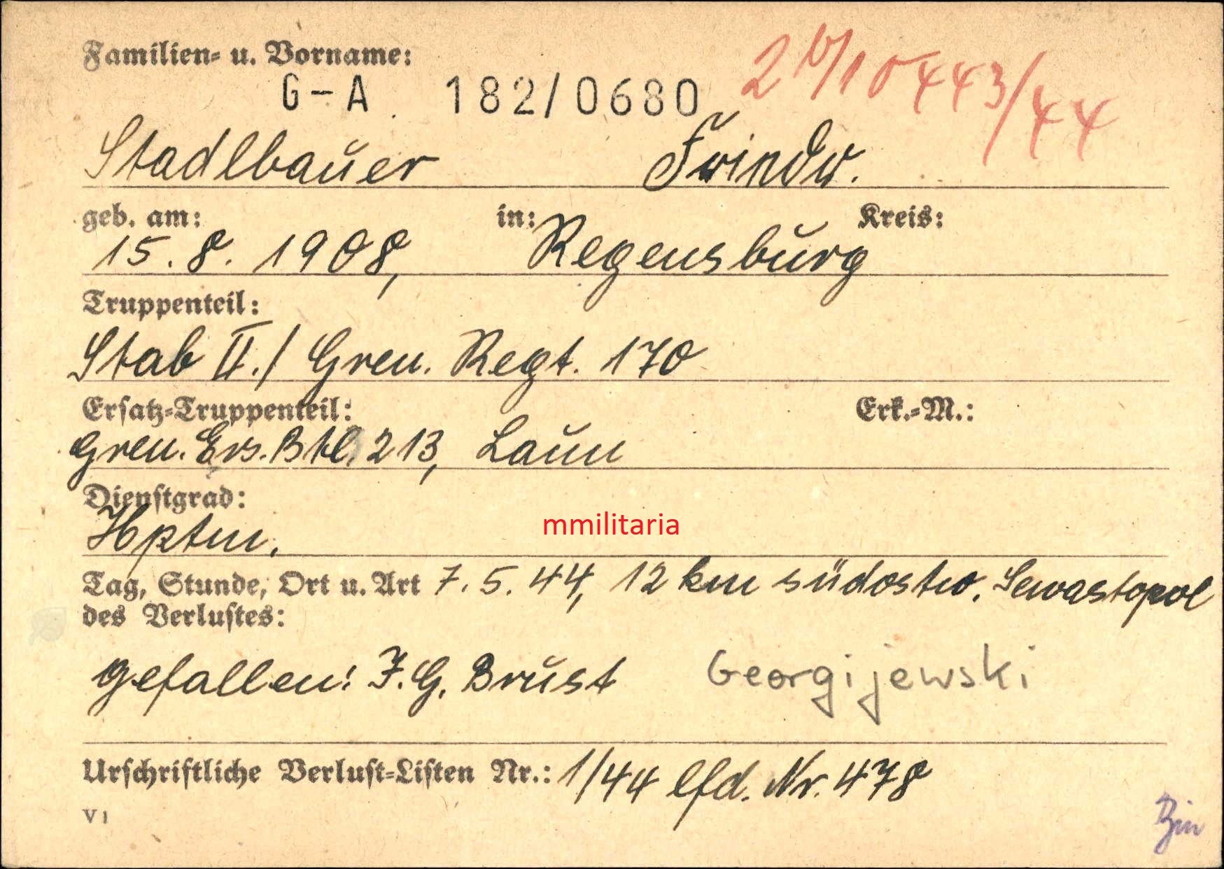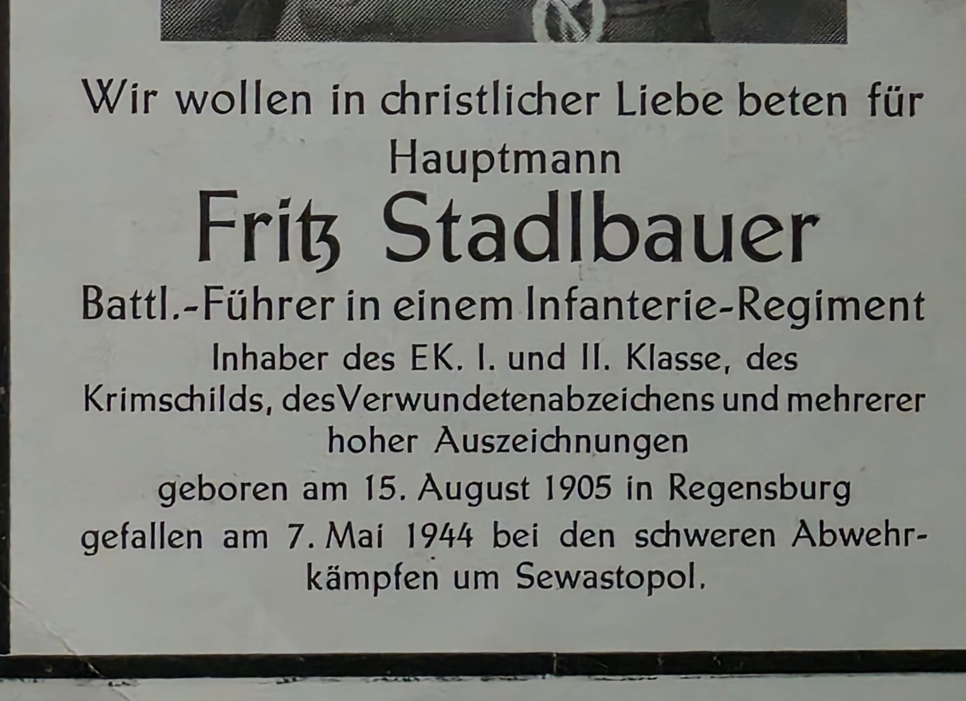 Sterbebild Hauptmann & Btl.-Führer Regensburg Stab II/Gren. Regt. 170 Krimschild Sewastopol Russland