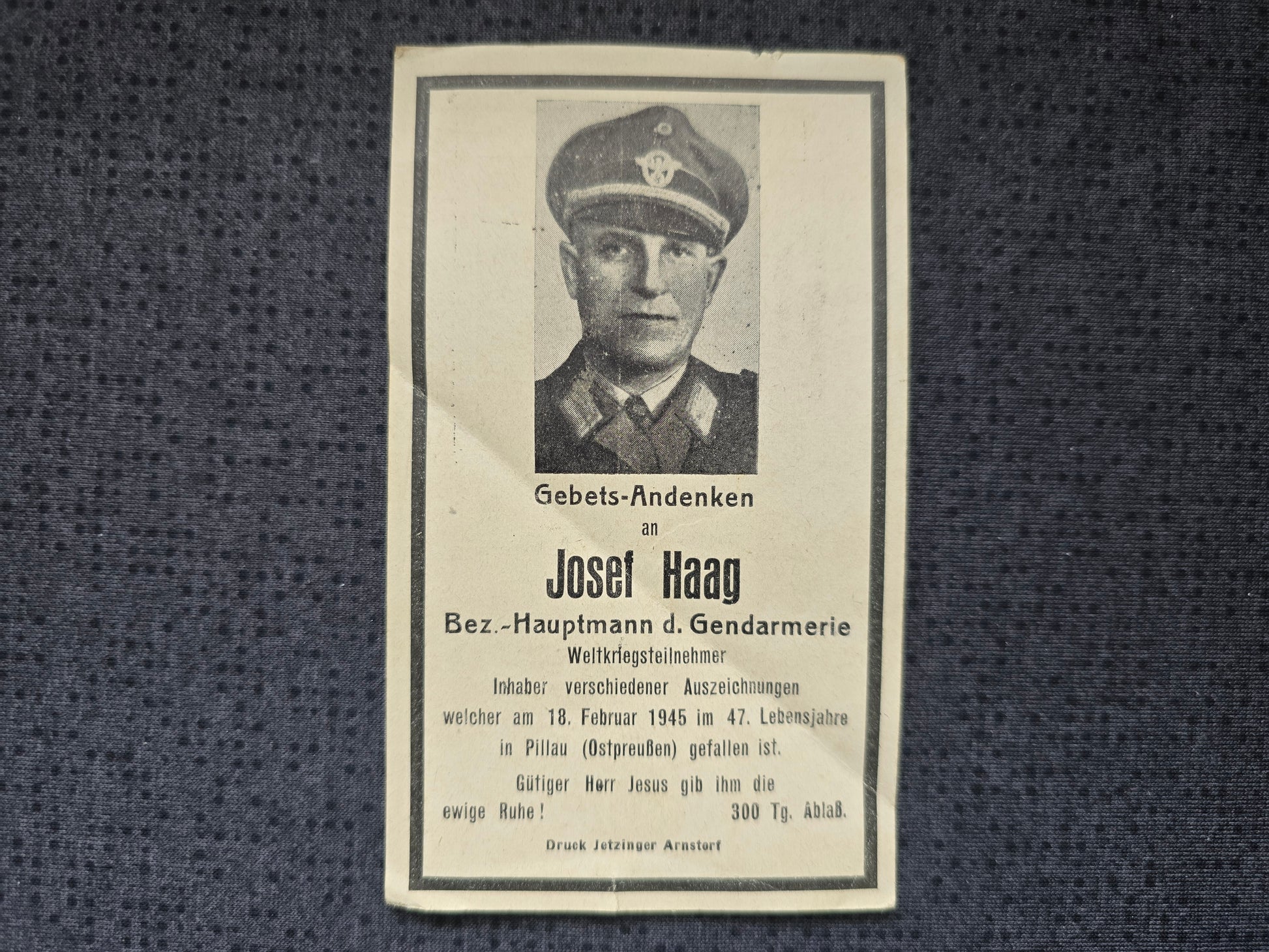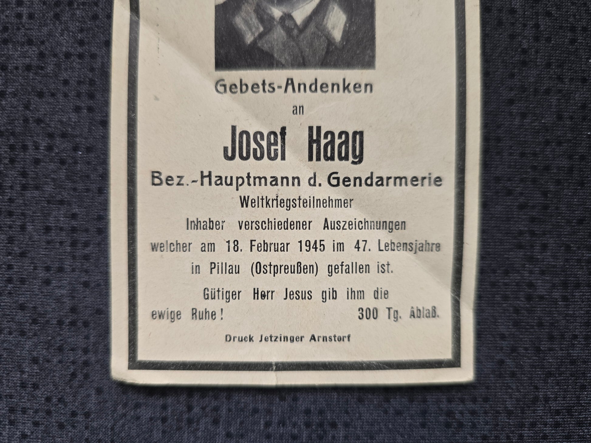 Sterbebild Hauptmann der Gendarmerie WK I Veteran Endkampf Ostpreußen Pillau Baltijsk Russland