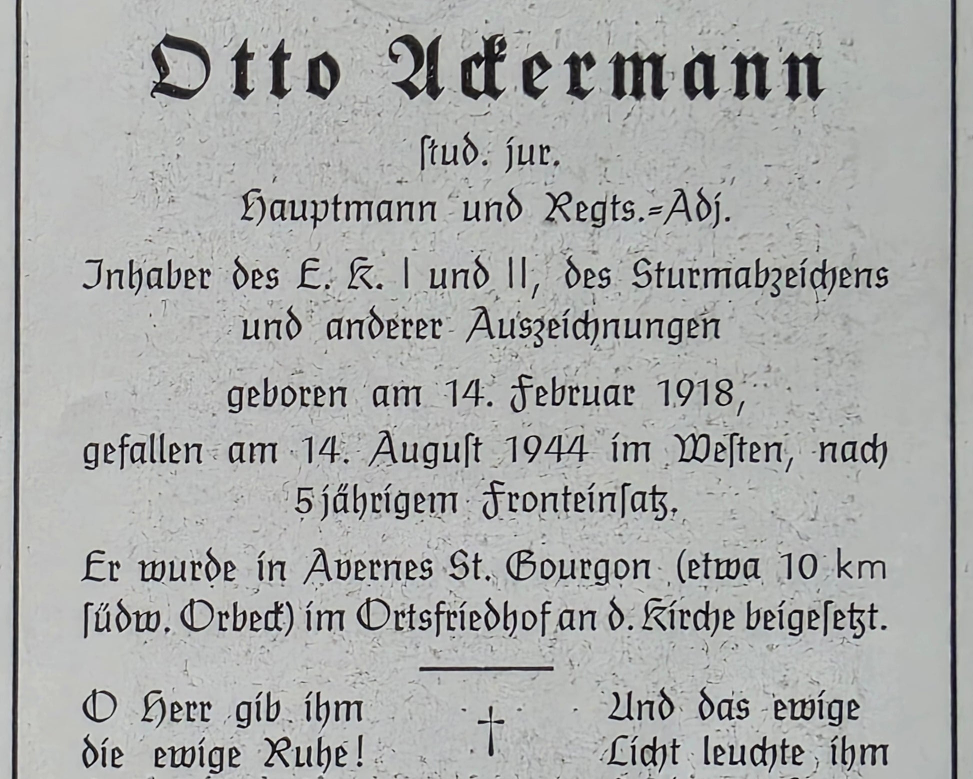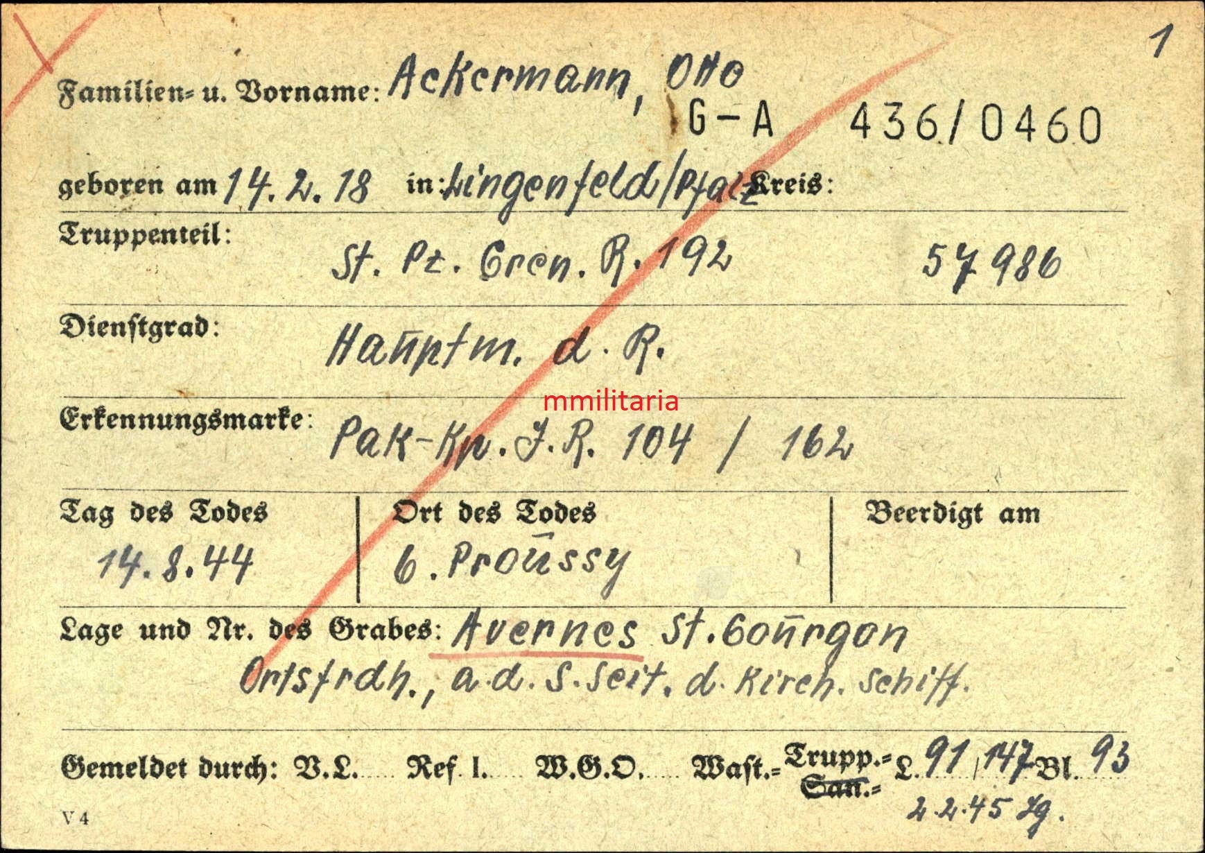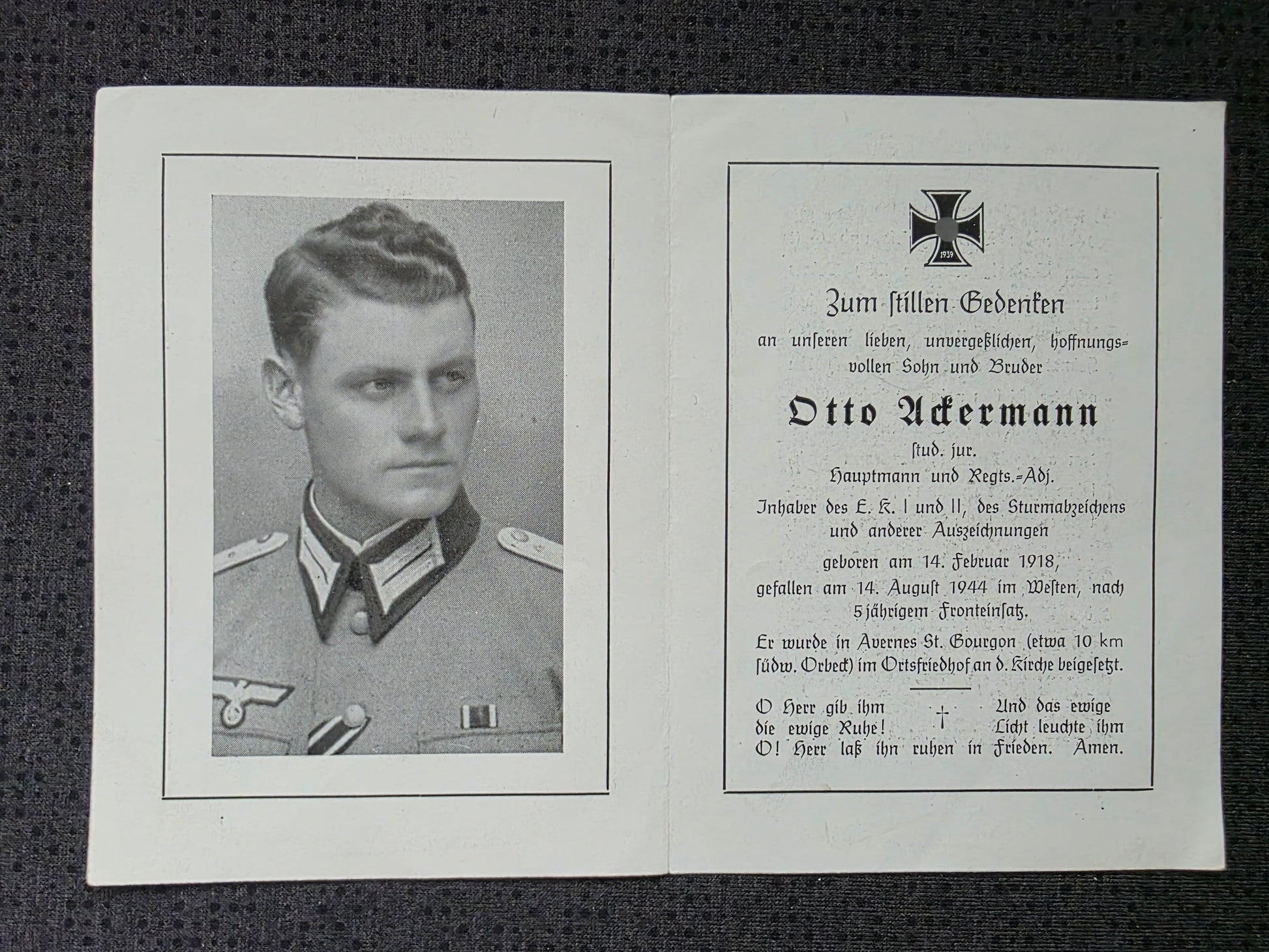 Sterbebild Hauptmann Lingenfeld Stab Pz.-Gren. Regt. 192 Proussy Avernes-Saint-Gourgon Normandie Frankreich