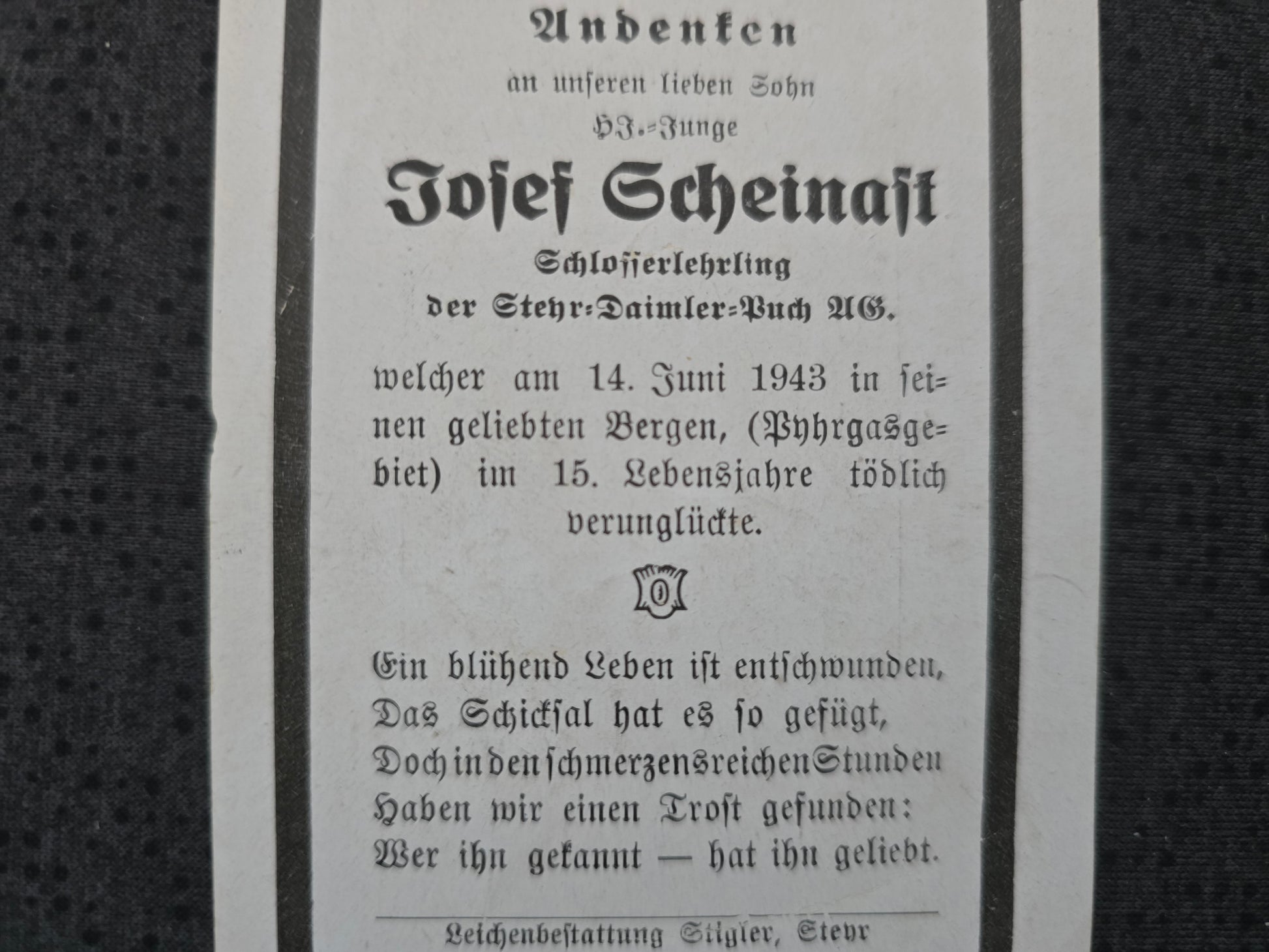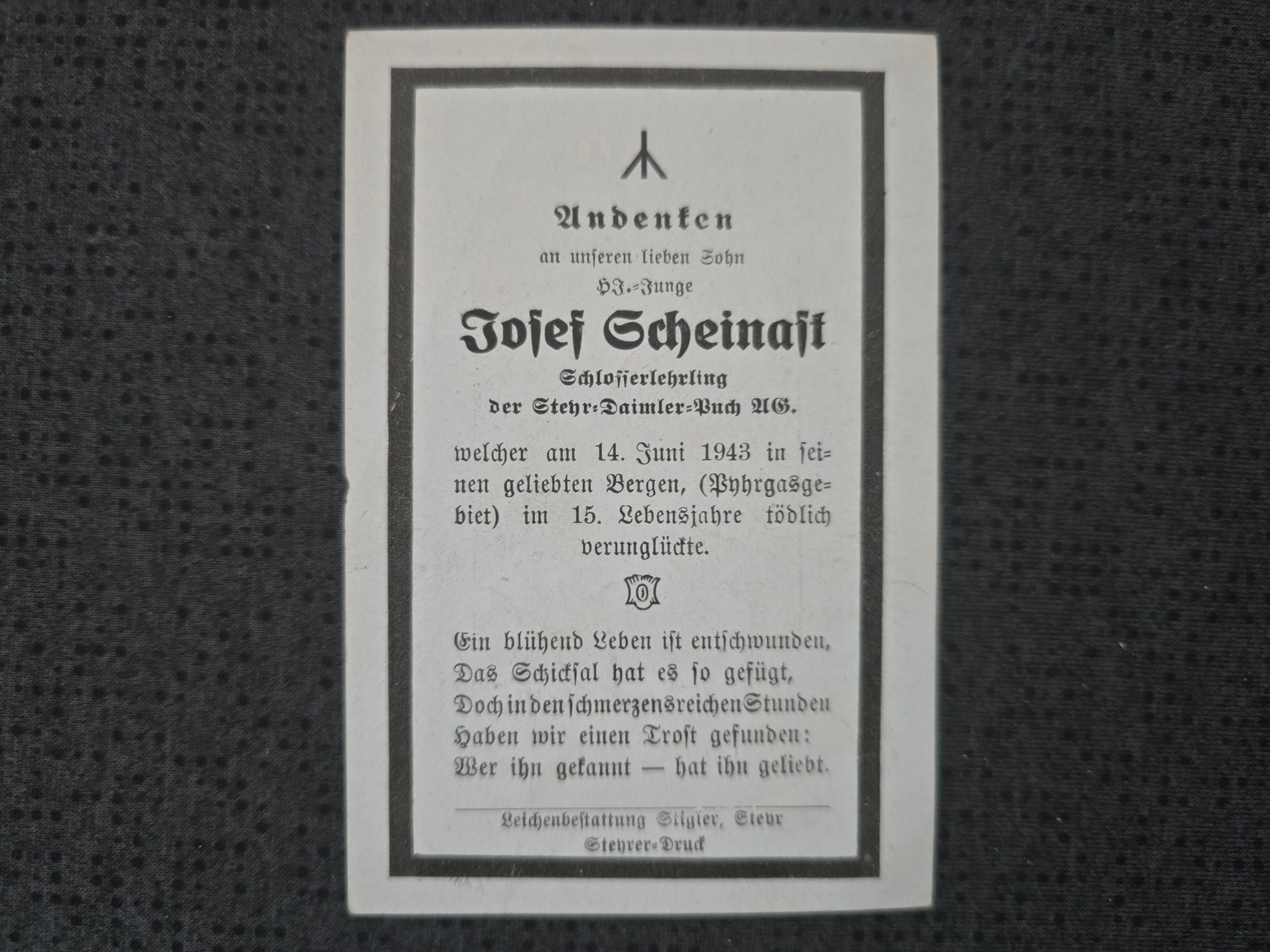 Sterbebild HJ-Junge 15 Jahre Tod in den Bergen Deutschland
