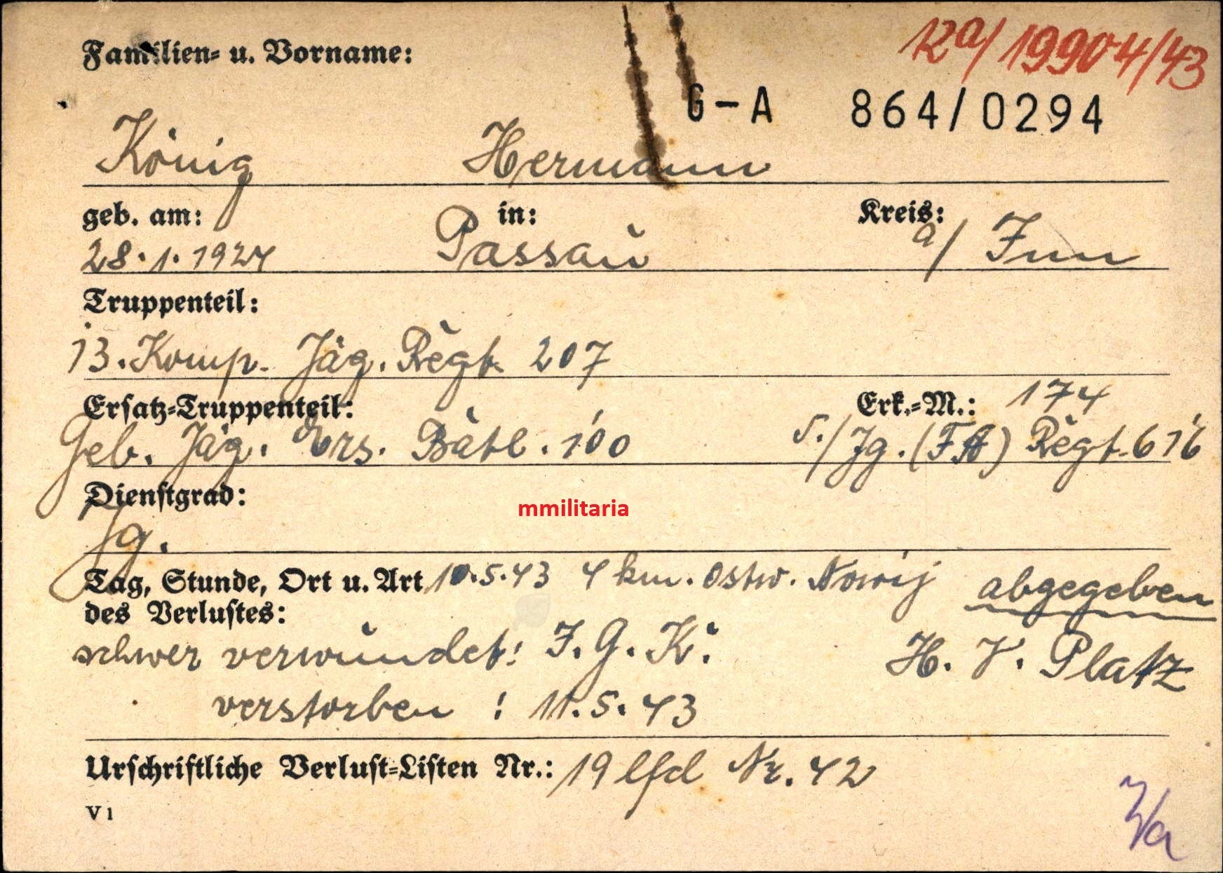 Gefallen am 10.05.1943 in am Kubanbrückenkopf (Russland)
