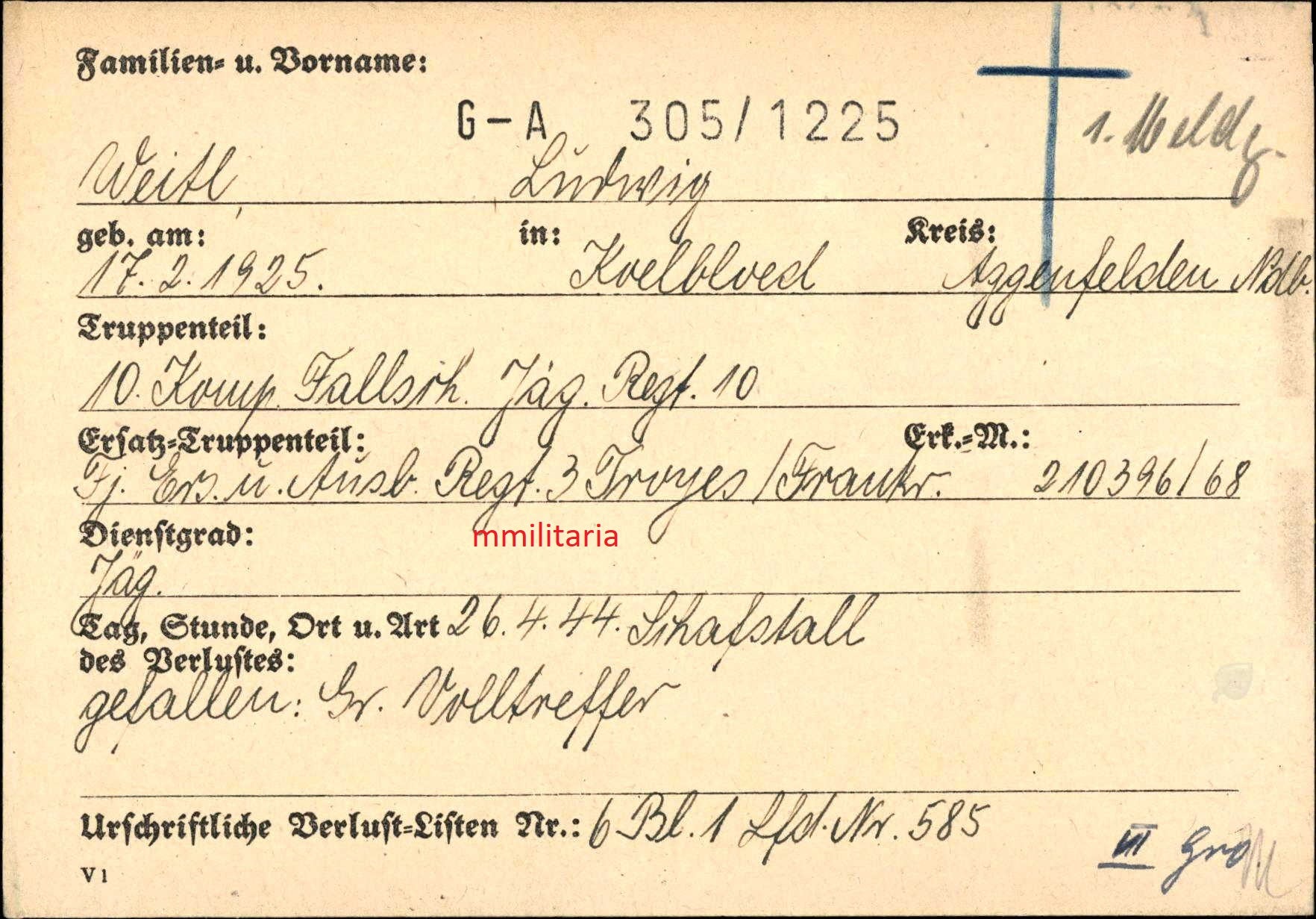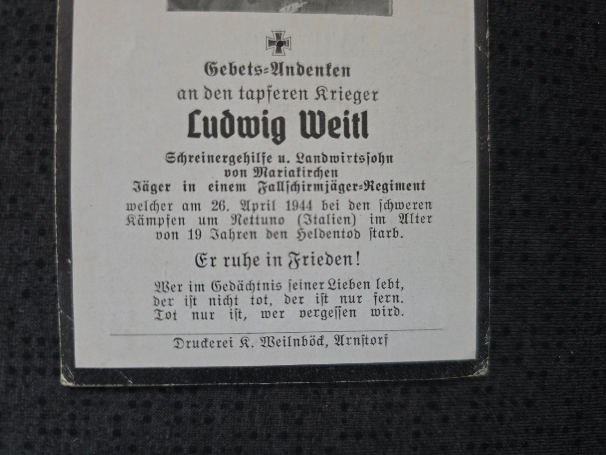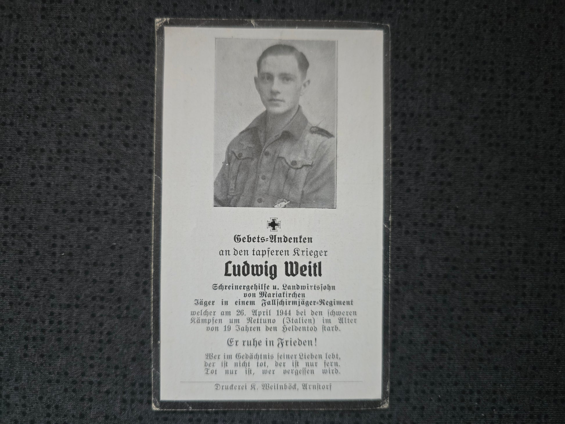 Sterbebild Jäger Arnstorf 10. Komp. Fallschirmjäger Regt. 10 schwere Kämpfe Nettuno Italien