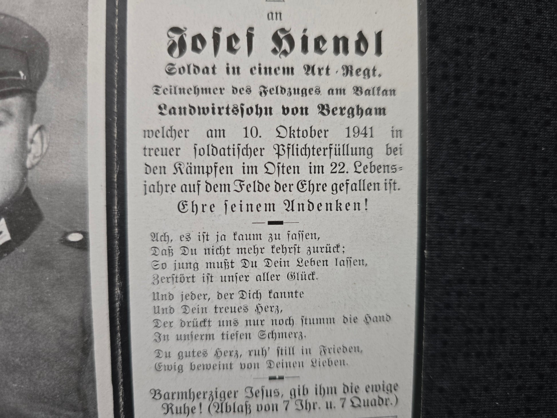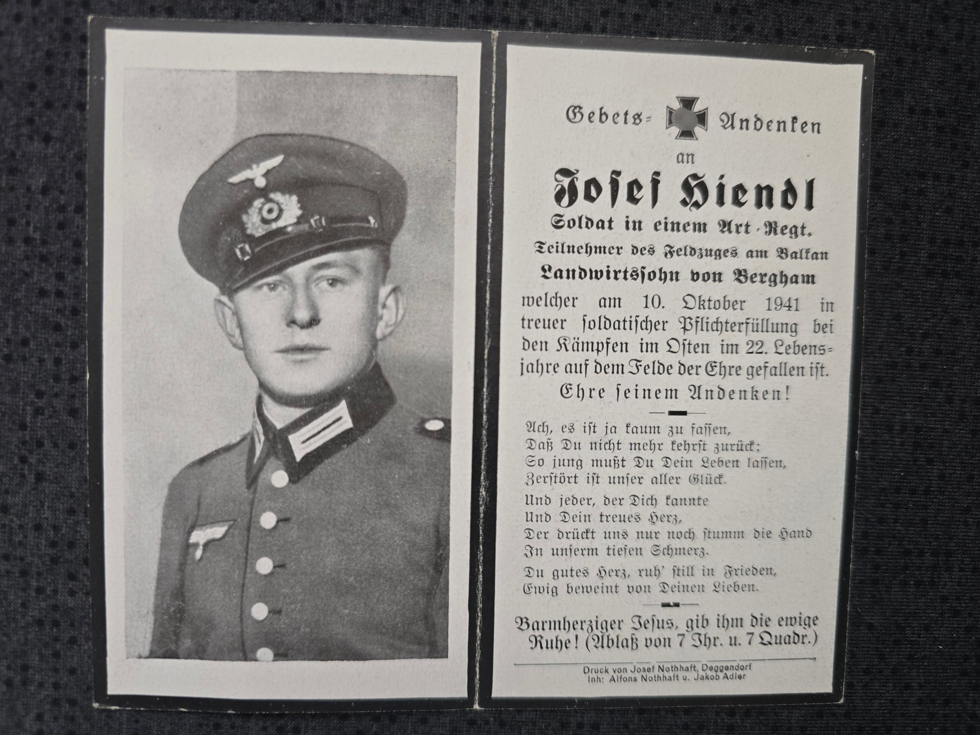 Sterbebild Kanonier Bergham 11. Batterie Art. Regt. 219 Jakowlewo Russland