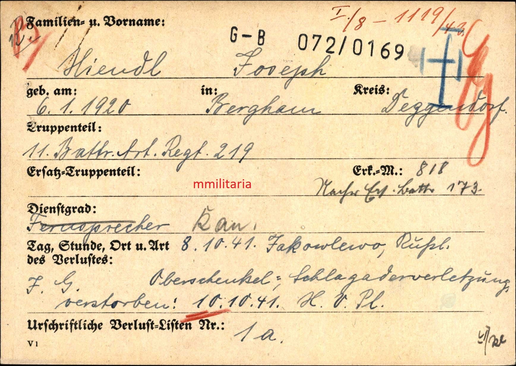 Gefallen am 10.10.1941 bei Jakowlewo (Russland)