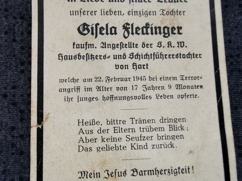 Sterbebild Kaufmännische Angestellte 17 Jahre Terrorangriff Februar 1945 Deutschland