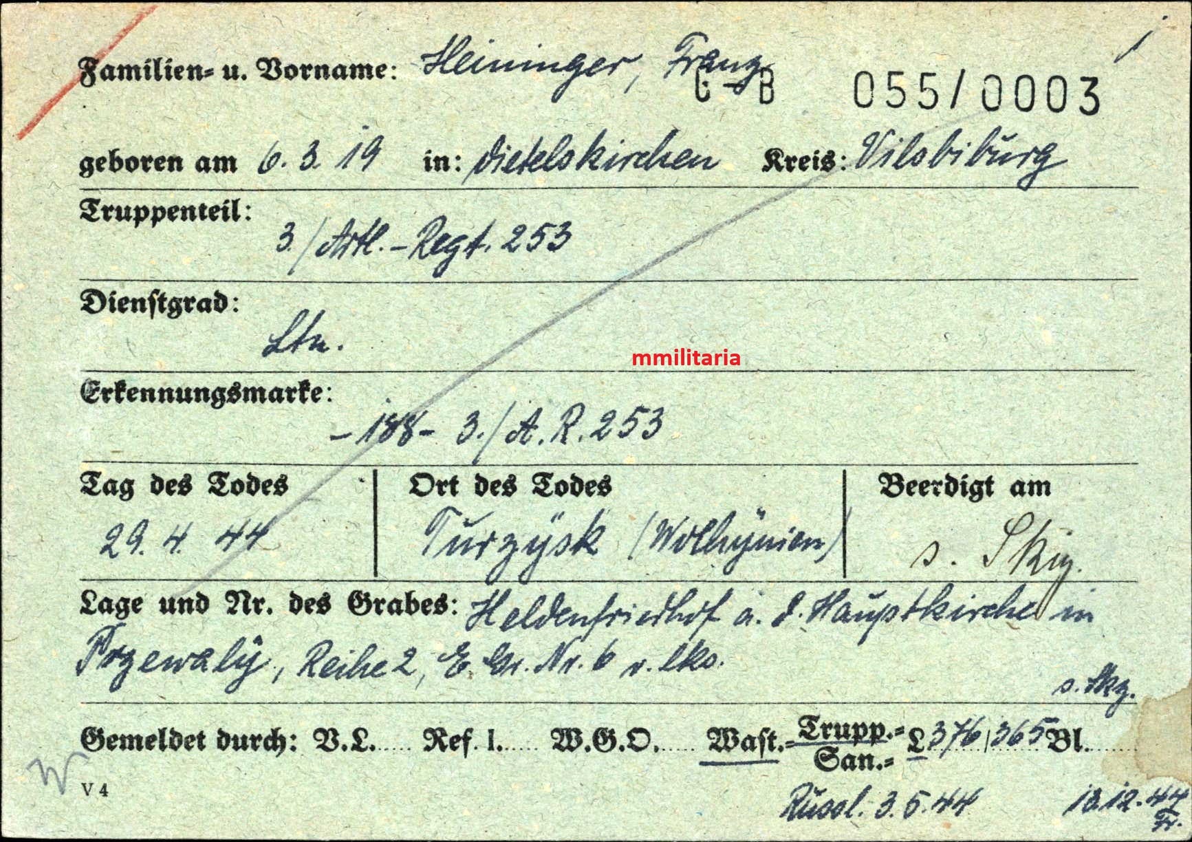 Sterbebild Leutnant Dietelskirchen 3. Art. Regt. 253 DKiG Turzysk Potelytsch Ukraine