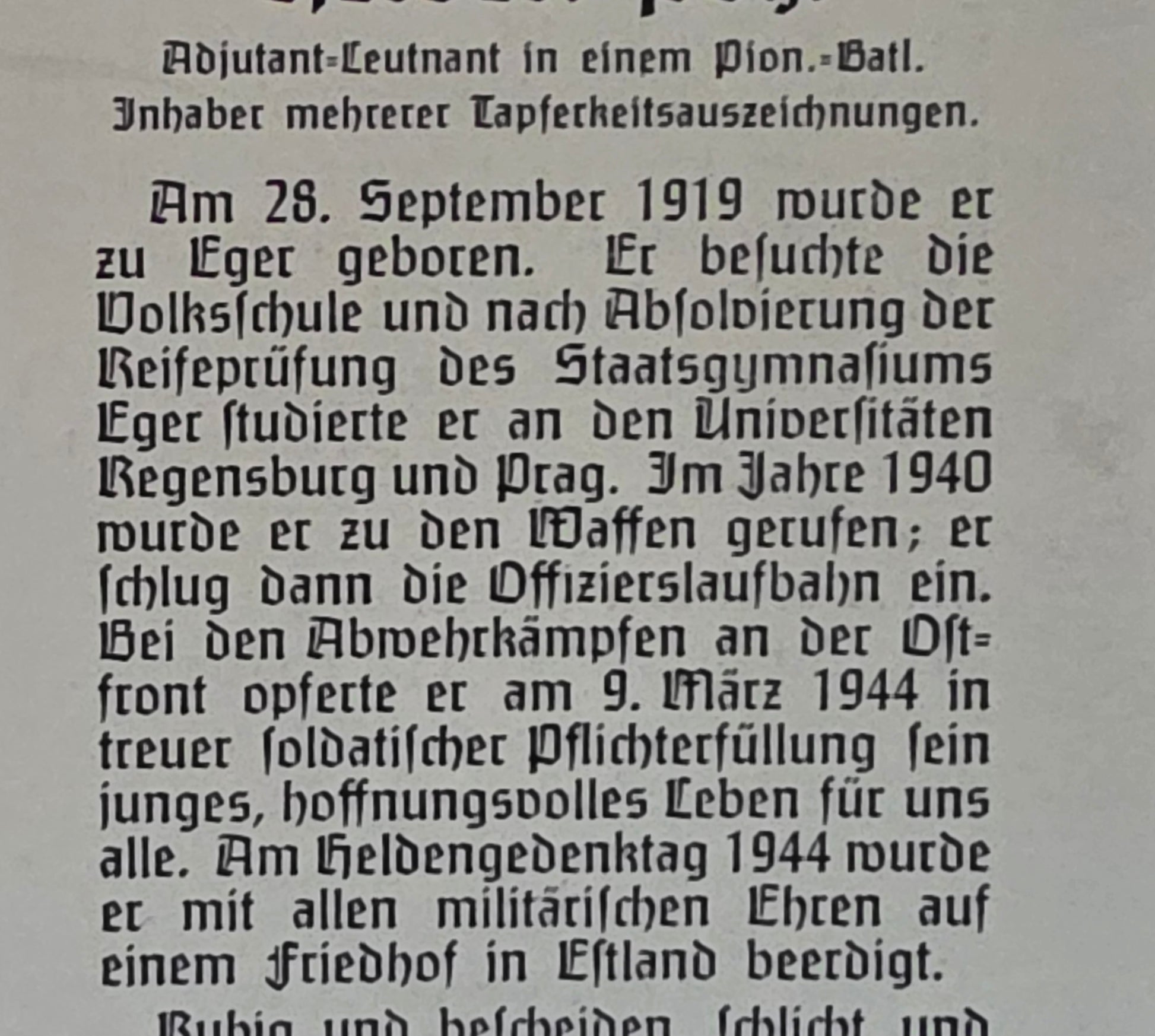 Sterbebild Leutnant Eger Pionier Btl. Tapferkeitsauszeichnungen Surgula Toila Estland
